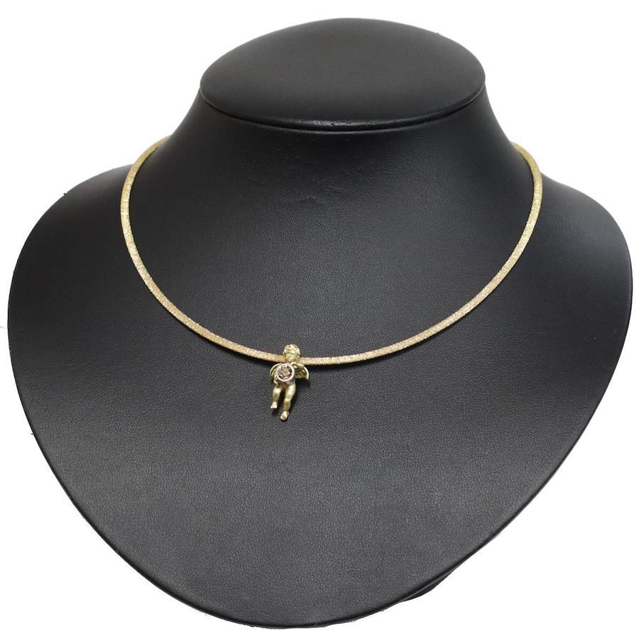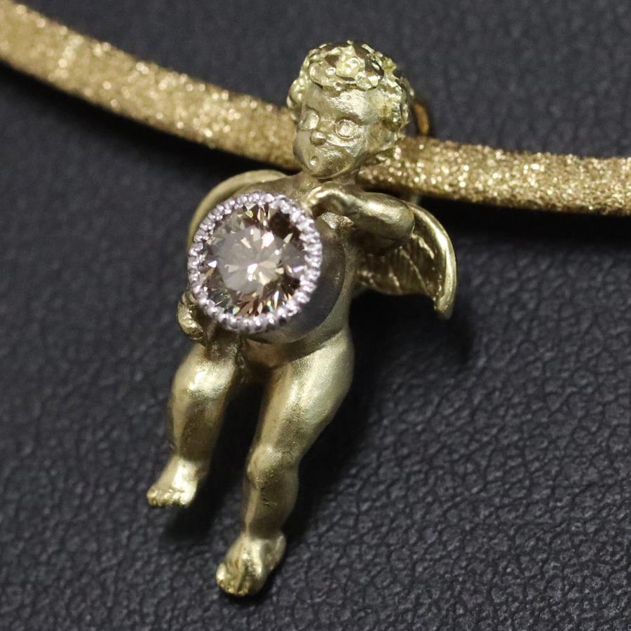 750/K18ダイヤモンドオメガチェーンペンダントの中古品です。オメガチェーンが11.7g、トップが4.8gです。トップは1粒のダイヤモンドを手に持つ天使のデザインです。ダイヤモンドの色味はブラウンで、インクルージョンがありますが、肉眼ではわかりません。地金には小傷があります。+---+---+---+---+---+。{状態}AB{素材}トップK18YG,ダイヤモンドチェーン750(K18YG){サイズ}トップ約W12mm × H21mm。チェーン長約32cm。{その他}D0.31ct,16.5g。{付属品}なし(サービス箱をお付けします){お問合せ商品番号}25096016+---+---+---+---+---+。