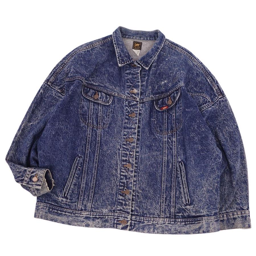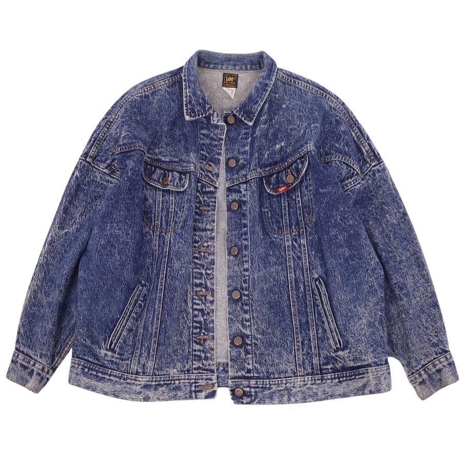 90's Lee jacket, chemical wash denim jacket, trucker jacket, outerwear, men's, made in USA, size L, indigo blue [used]