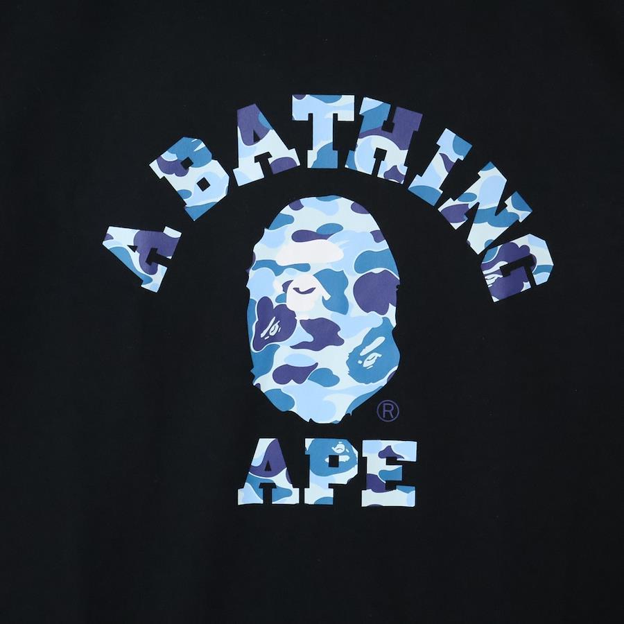 A Bathing Ape ABC Camo College Tee, ABC Camo College Print Crew Neck T-Shirt, Black/Blue, Size 3XL (Product Code: 001TEL801005M)