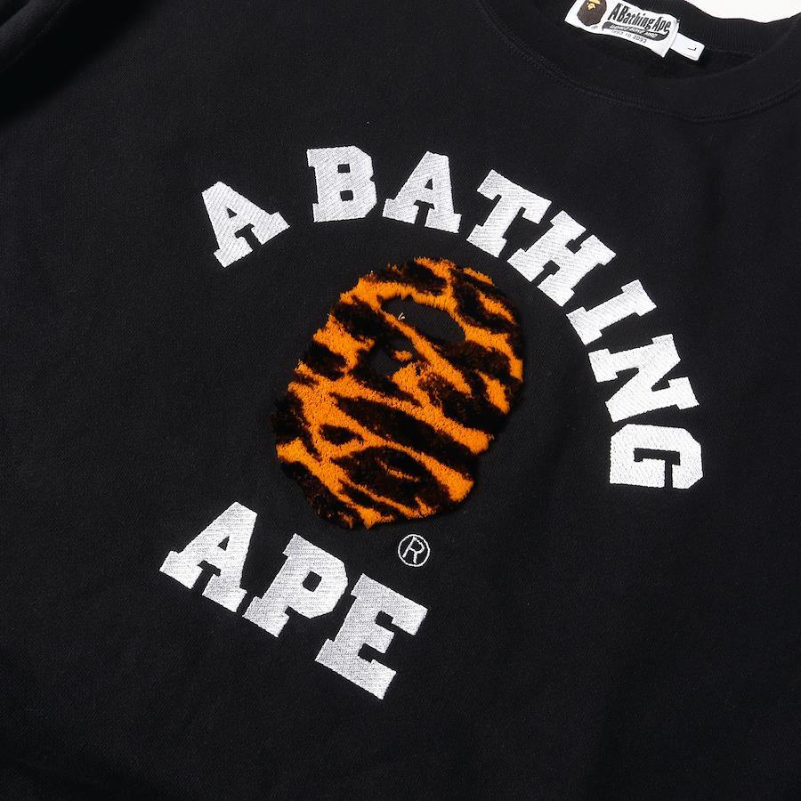 | 商品説明 | 定番のカレッジロゴをタイガーカモ起毛プリントと刺繍でアレンジしたリラックスフィットの裏毛スウェットです。袖にはタイガーキャラとフロッキープリントの寅ロゴがデザインされております。 |