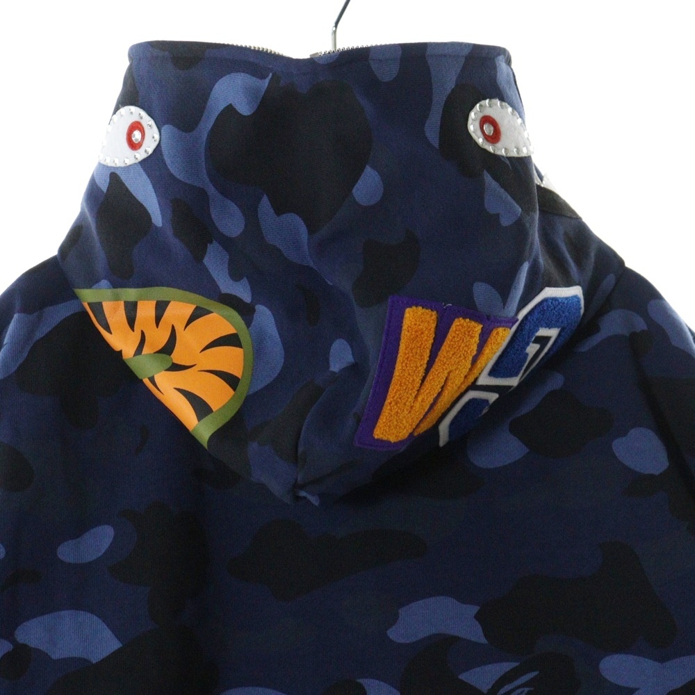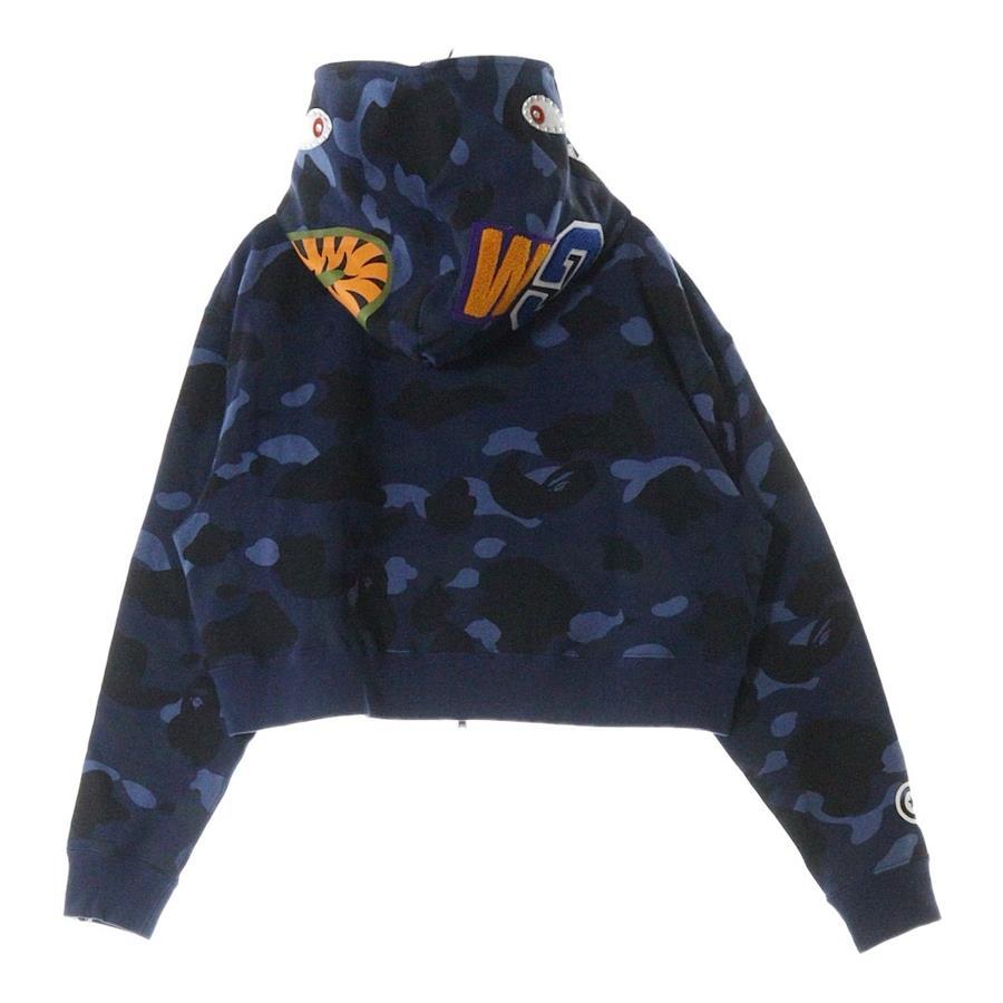 [モデル]COLOR CAMO CRYSTAL STONE SHARK CROPPED FULL ZIP HOODIE カモ クリスタルストーン シャーク ジップアップパーカー レディース ブルー 001ZPL802010L