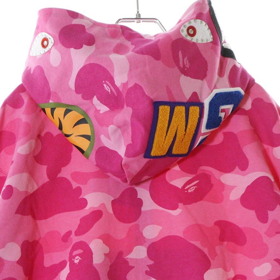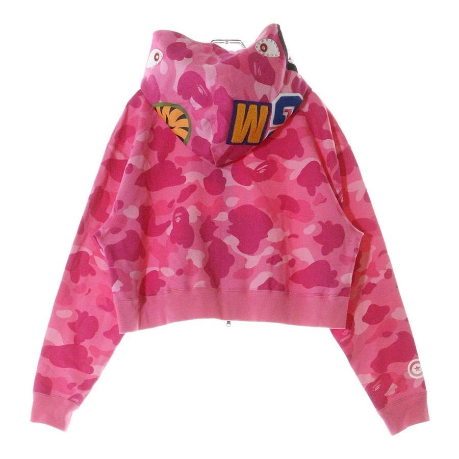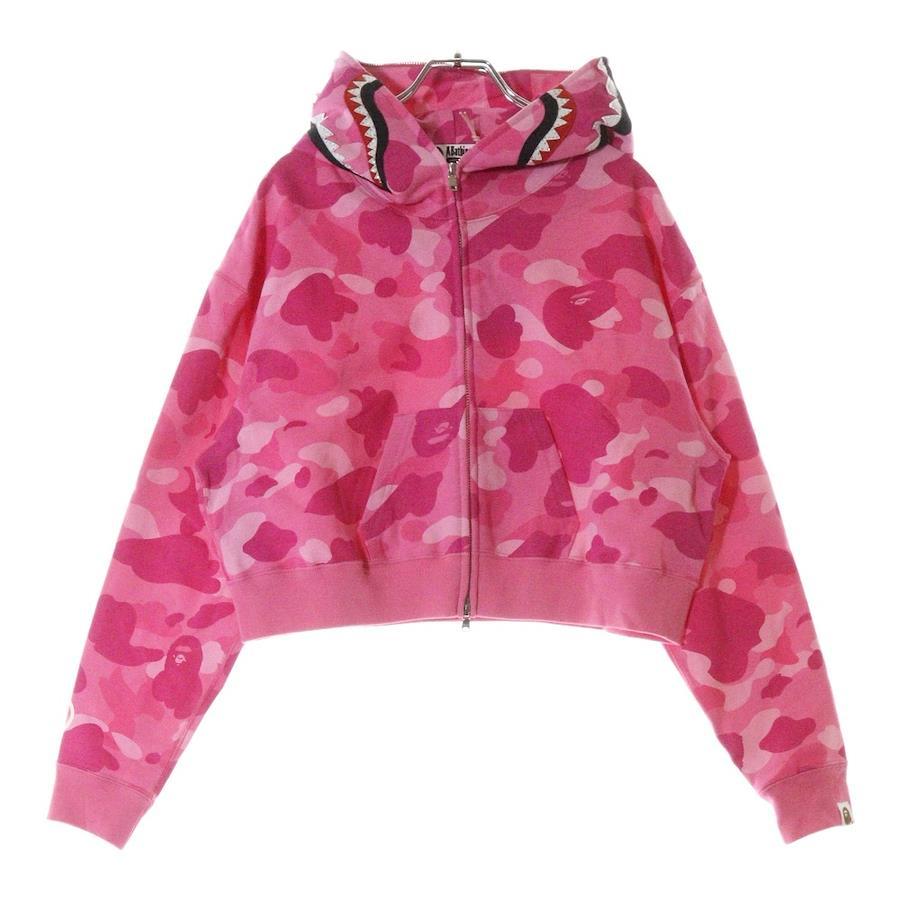 [モデル]COLOR CAMO CRYSTAL STONE SHARK CROPPED FULL ZIP HOODIE カモ クリスタルストーン シャーク ジップアップパーカー レディース ピンク 001ZPL802010L