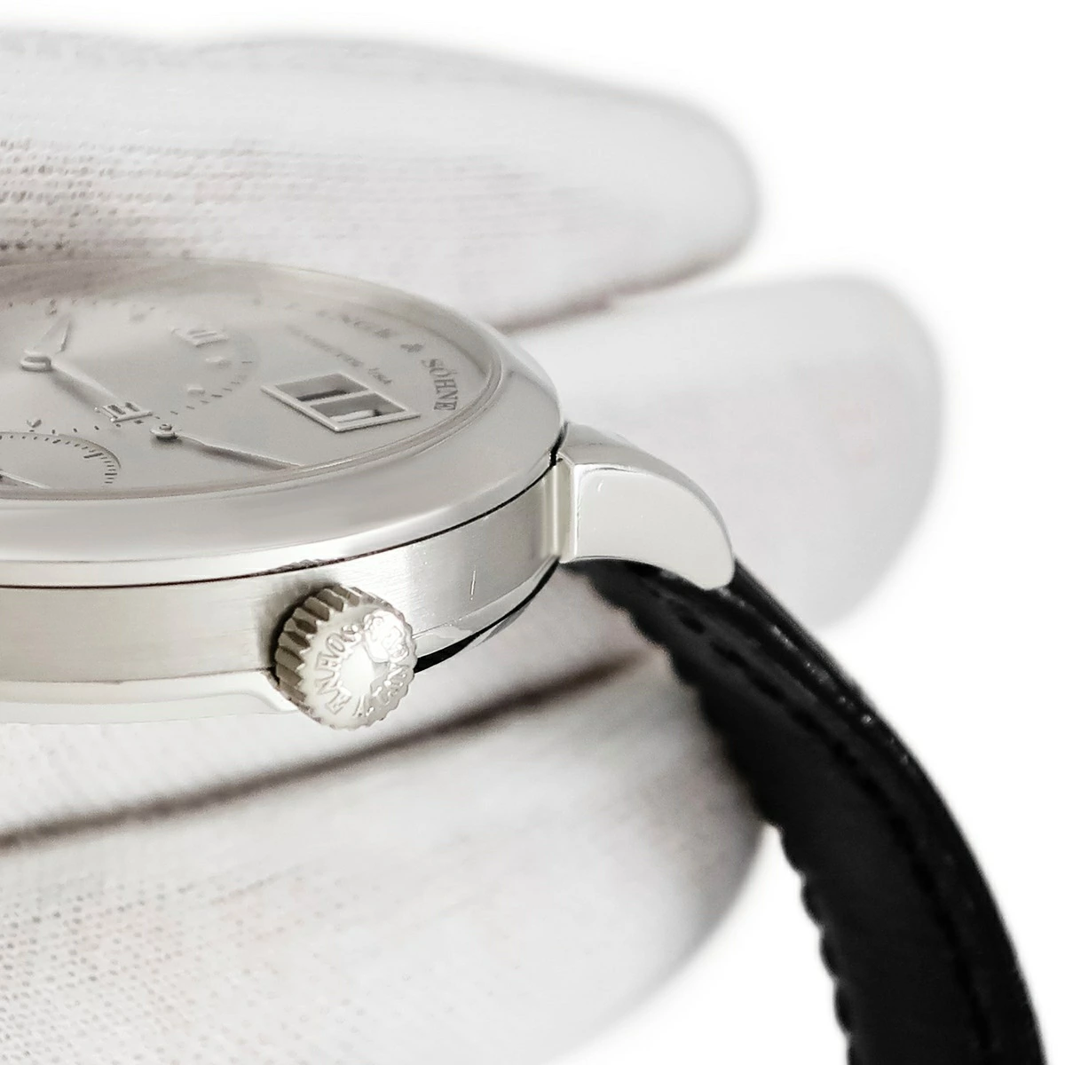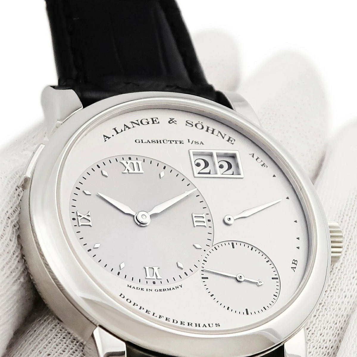 ランゲ&ゾーネ LANGE&SOHNE ランゲ1 101.025 Pt950無垢 プラチナ オフセンター パワーリザーブ アウトサイズデイト メンズ 腕時計手巻き シルバー 【中古】【店頭受取不可】