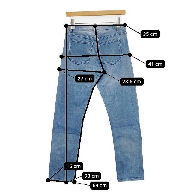 | 実寸サイズ | 総丈:約93cm ウエスト:約35cm 股上:約28.5cm 股下:約69cm ヒップ:約41cm ワタリ幅:約27cm 裾幅:約16cm ※採寸画像がある商品はハンガーに吊るした状態での計測のため、平置きでの採寸とは差が生じる場合がございます。平置きでの実寸サイズをご希望の場合は、ご購入前に必ずご質問ください。 ※記載以外のサイズが合わないことを理由とした返品はできませんので、 記載部分以外で実寸サイズの気になる箇所があれば必ず購入前にご質問ください。 |