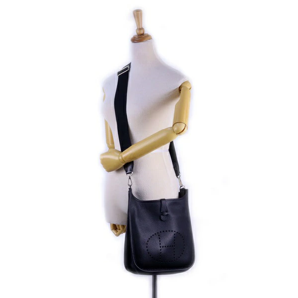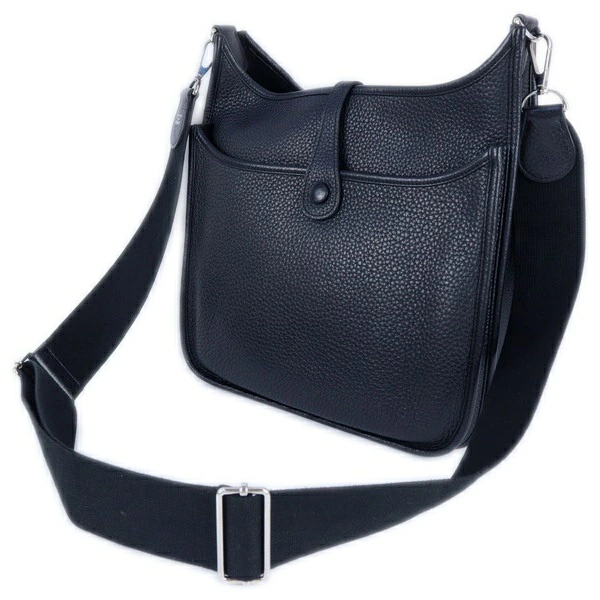 A-Rank [Hermes] Evelyne 3 PM / Taurillon Clemence Leather / Black / Palladium Hardware / □Q Stamp / Shoulder Bag / Women's / HERMES