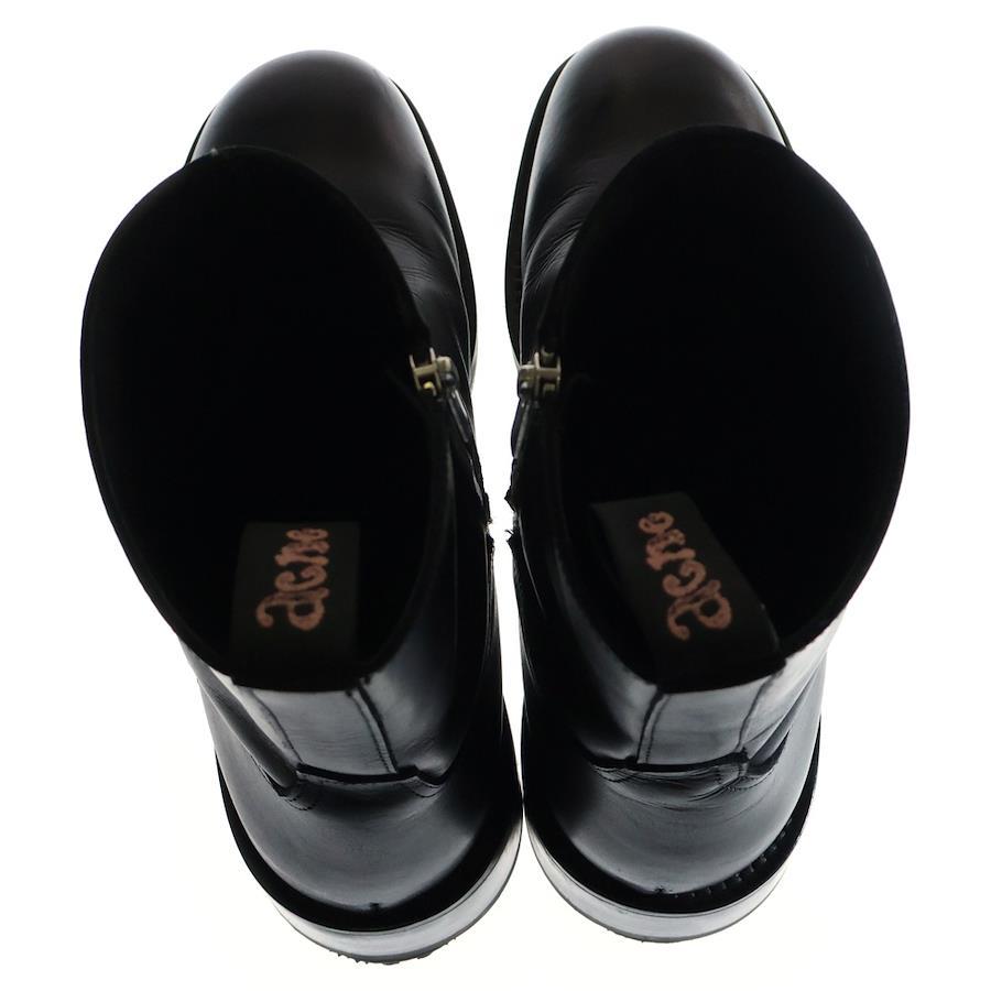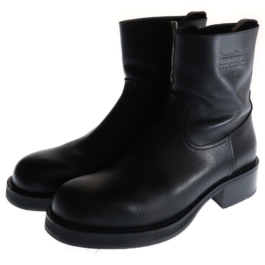 [モデル]Glossed low leather boots サイドジップ レザーブーツ シューズ ブラック BD0297