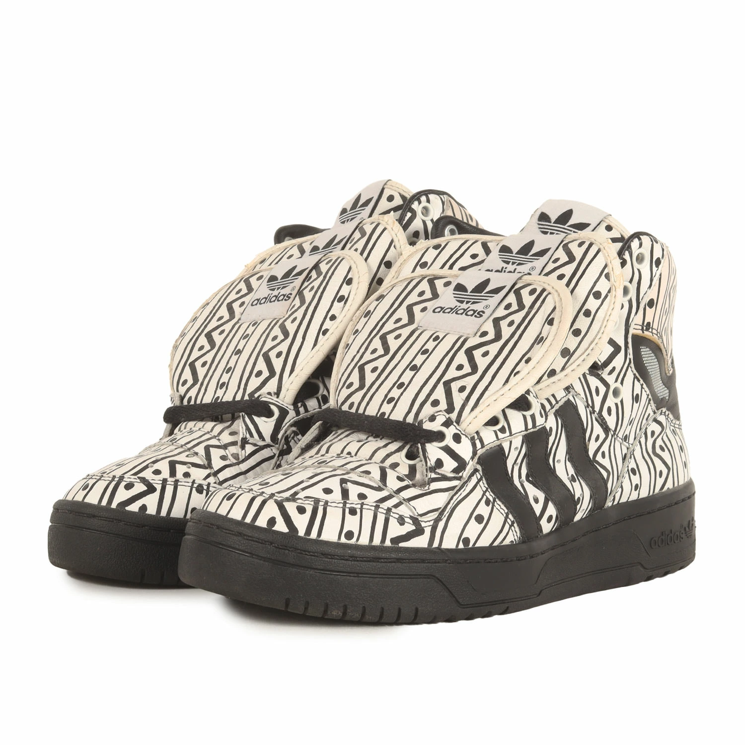 | 商品説明 | アメリカ人デザイナー“JEREMY SCOTT”とのコラボシリーズです。こちらは3重タンやグラフィックプリントをデザインしたユニークな一足になります。 |