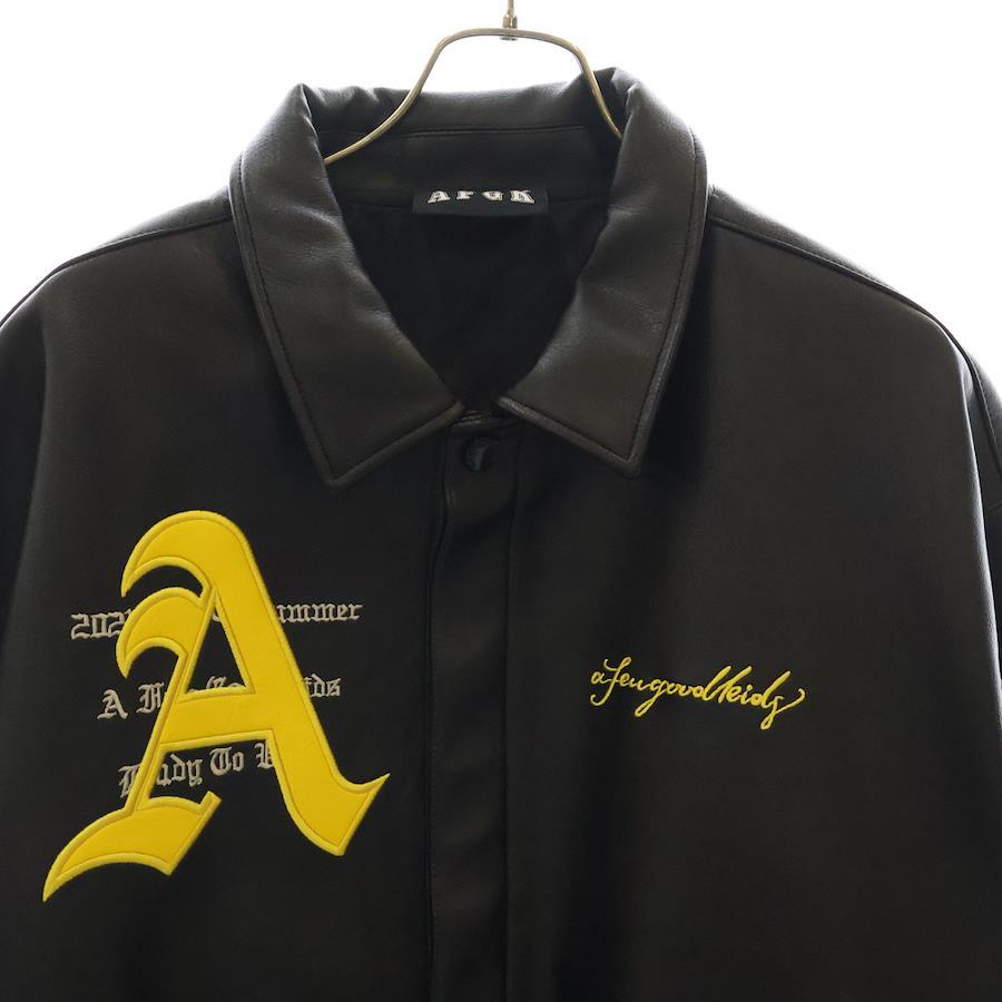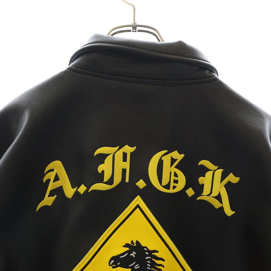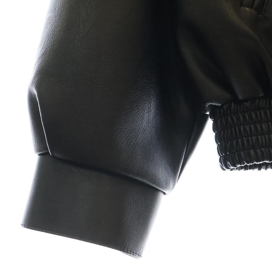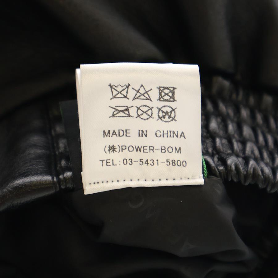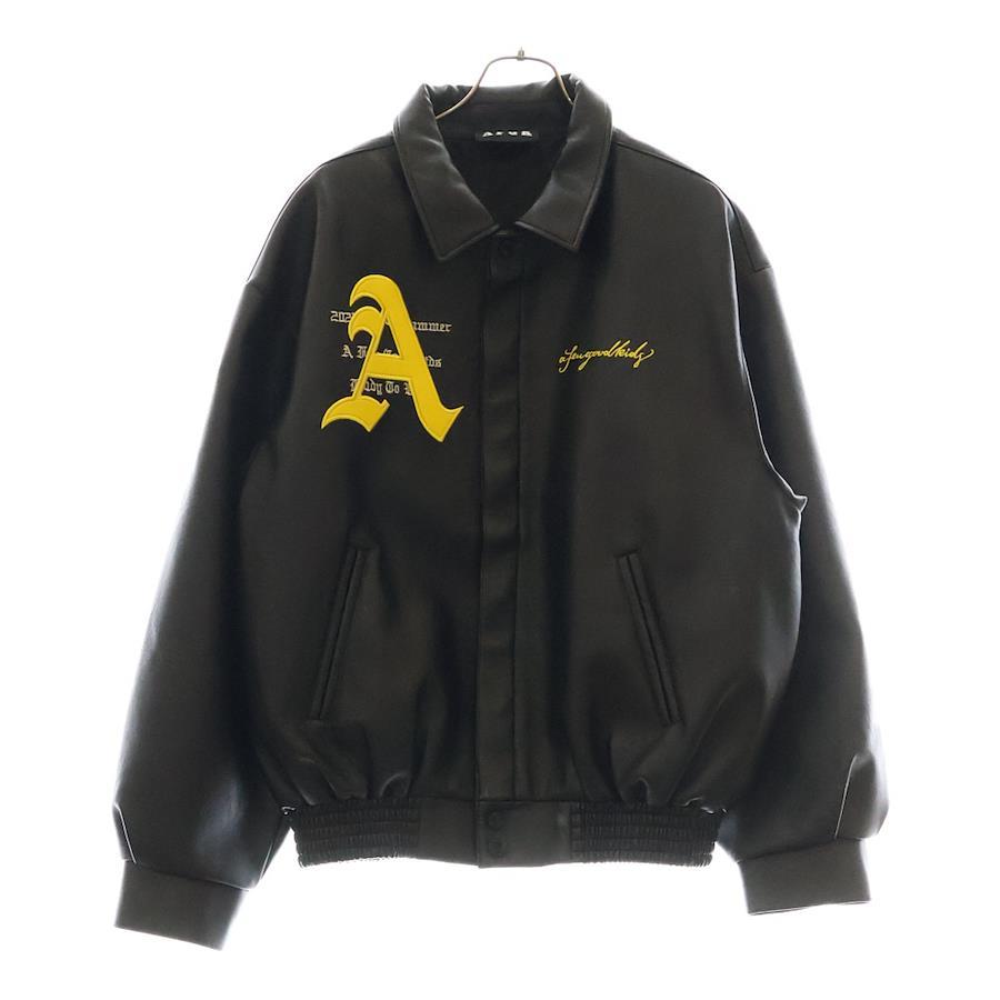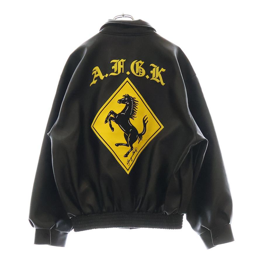 [モデル]レザージャケット バックロゴ刺繍 ブルゾン ブラック/イエロー