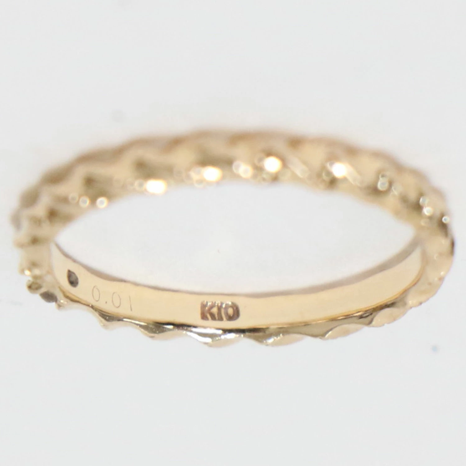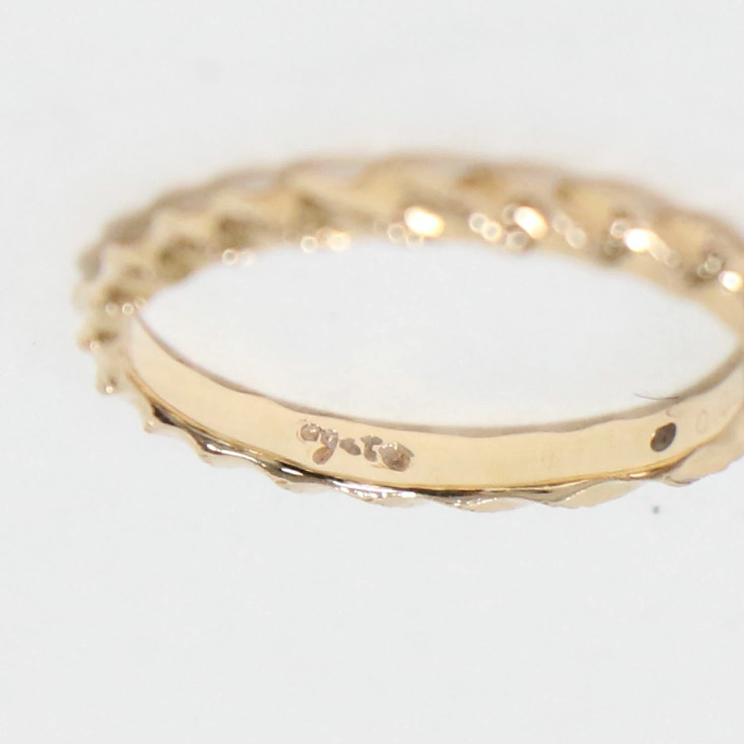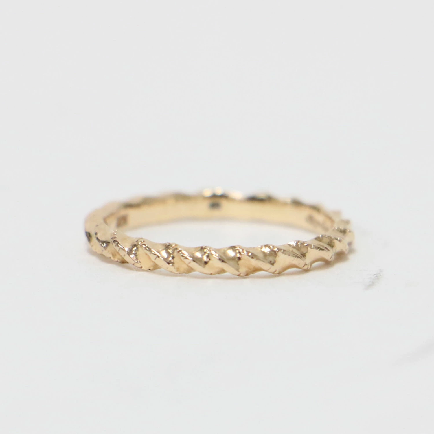 | 商品説明 | ◆リング全体に繊細なツイスト(ひねり)加工が施されており、ロープチェーンのような表情豊かなテクスチャーが特徴 ◆センターにはメレダイヤがさりげなくセッティング ◆繊細なテクスチャーのため、シンプルな地金リングや大粒の石付きリングなど、他のリングとの重ね付けにも最適◎ ・0.01ct |