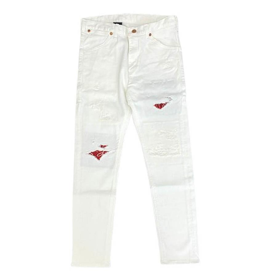 ホワイト系【モデル】× Wrangler ラングラー ダメージ加工 バンダナ柄 デニム パンツ