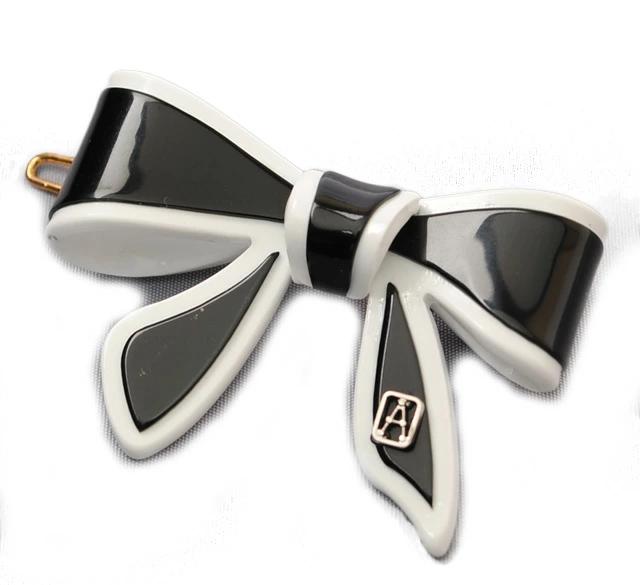 Alexandre de Paris Barrette DEHLI/リボン 6cm ブラック/ホワイト ATB-12688-03
