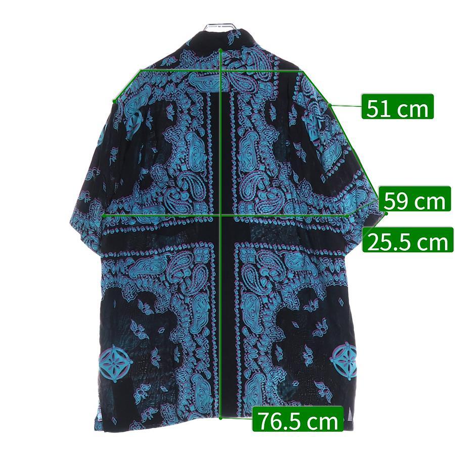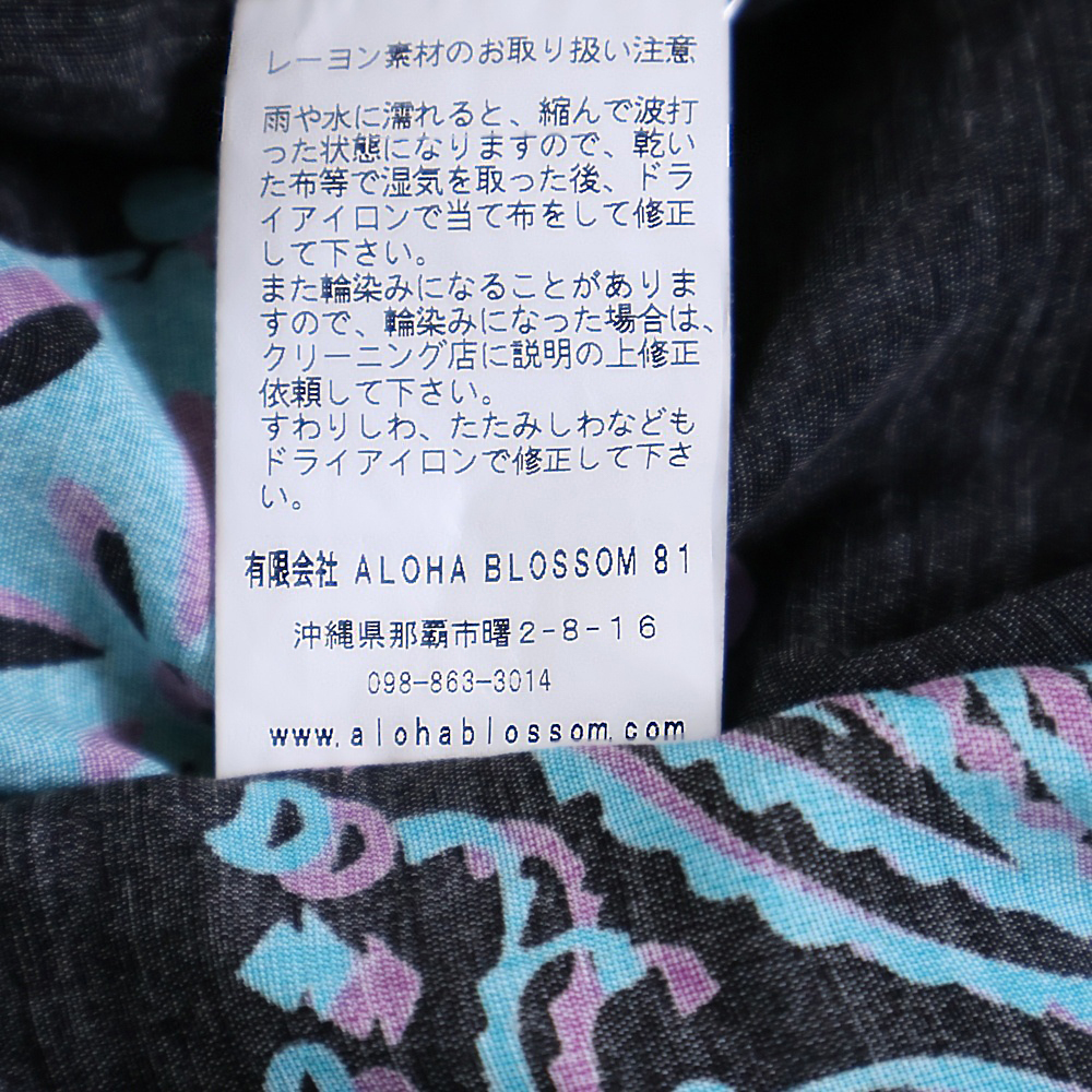 ■商品情報[商品番号]1025G300040[ブランド]Aloha Blossom(アロハブロッサム)[モデル]HAWAIIAN SHIRT S/S AB-0036010101 総柄プリント 開襟シャツ 半袖シャツ ブラック/ブルー[サイズ]着丈:76.5センチ 身幅:59センチ 肩幅:51センチ 袖丈:25.5センチ表記サイズ:44■状態・コンディション[状態ランク]ランク B使用感有り全体的にヨレ有り前身頃左中部に汚れ有り