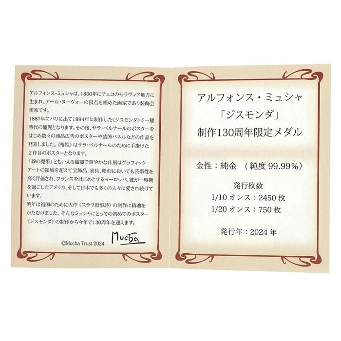 ペンダントトップ アルフォンス・ミュシャ メダル ジスモンダ 椿姫 1/20oz 制作130周年 750枚限定 Au999