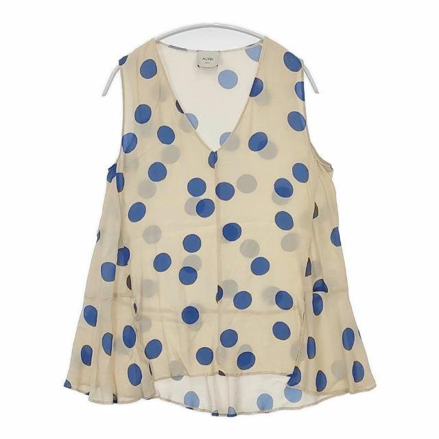 ALYSI Made in Italy Sleeveless Polka Dot Blouse Shirt, Beige/Blue, Women's, Pre-owned, Product Number 5-0824S