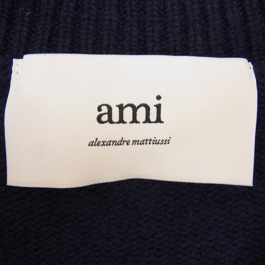 AMI PARIS UKS244.KN0028 EMBOSSED AMI DE COEUR V-NECK SWEATER, embossed logo, navy, size XL [Pre-owned]
