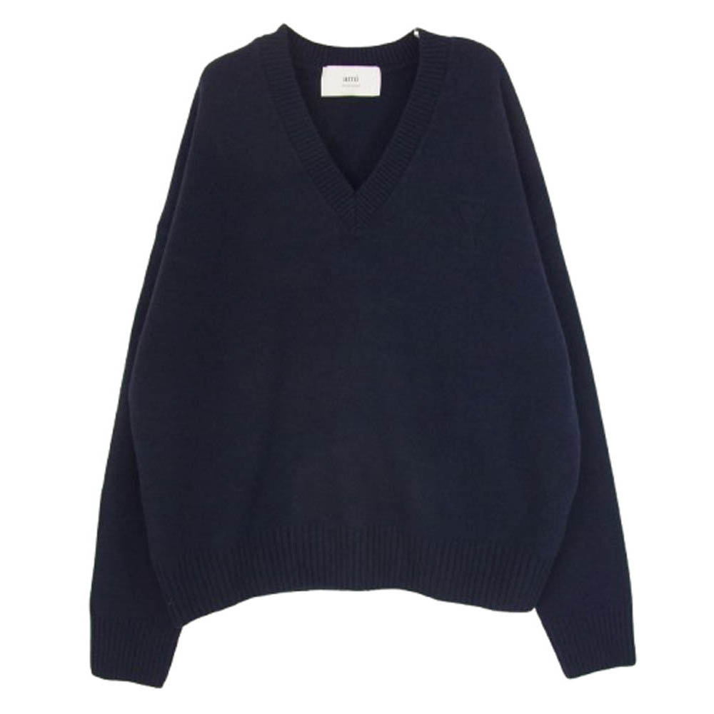 ネイビー系【モデル】EMBOSSED AMI DE COEUR V NECK SWEATER エンボスロゴ Vネック ニット セーター