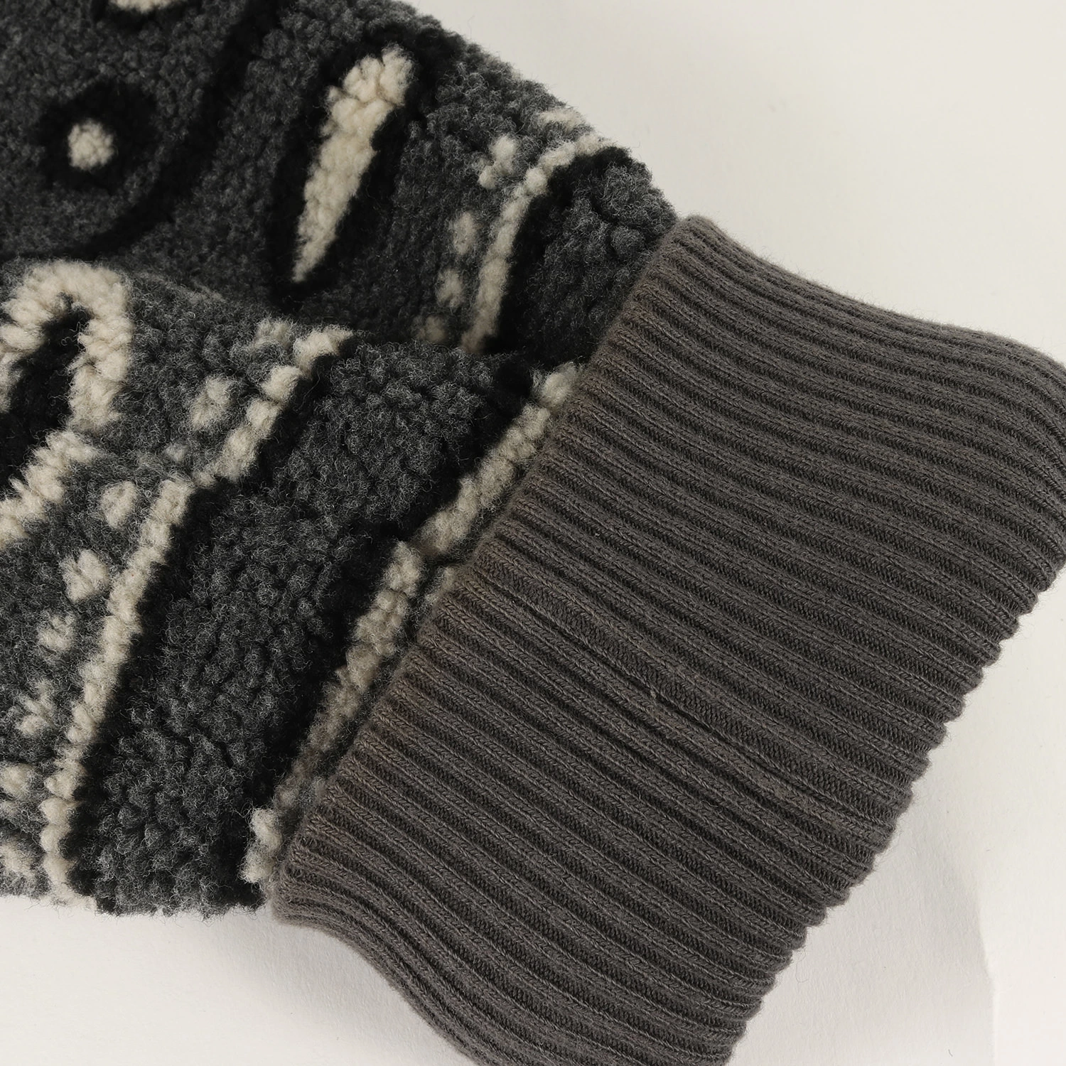 | 商品説明 | ペイズリー柄プリントが施されたアクリルポリエステル混紡ボアフリース素材を使用し、ラムレザー切り替えデザインがあしらわれ、ハイネックダブルジップ仕様で仕上げられた"Printed Bandana Polar Fleece Jacket"です。 |