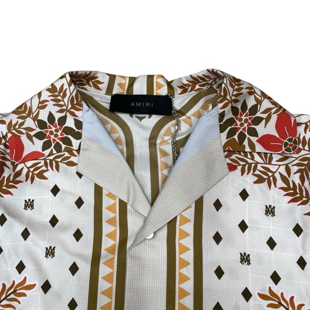 【ブランド】AMIRI アミリ【商品名】シルクシャツ【商品番号】SRAMSTIR1003SMRSIKO【カラー】ホワイト/ブラウン【サイズ】サイズ表記L(平置き採寸):着丈 70cm 肩幅 48cm 身幅 55cm 袖丈 30cm【素材】シルク100%【付属品】タグ【ランク】S(未使用)【コメント】内側の品質タグに一部ほつれが見られ、やや外れかかっております。【管理番号】0413d1475a商品情報