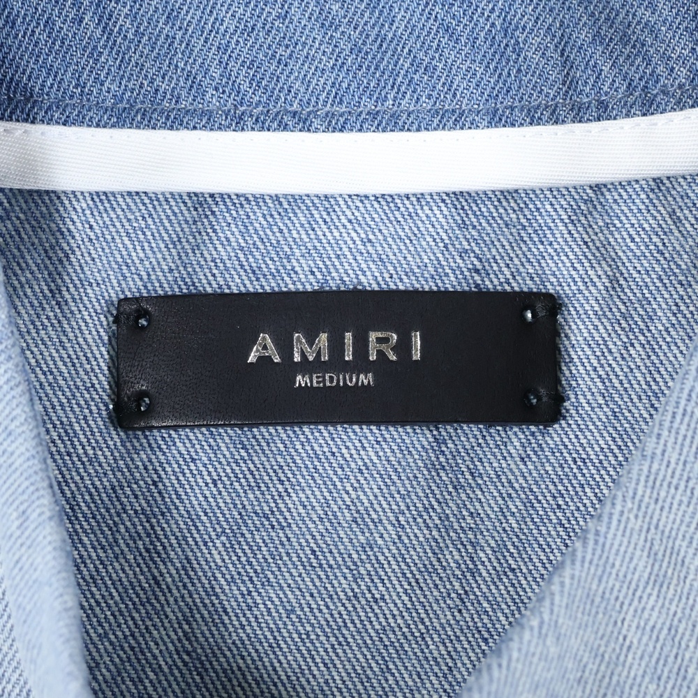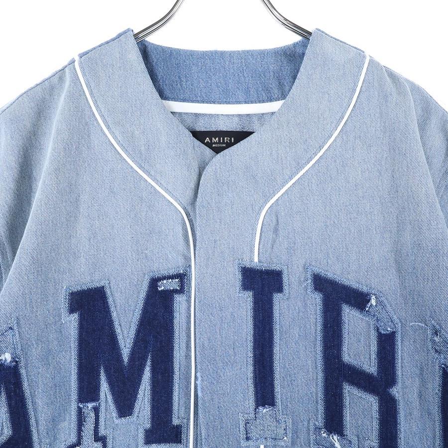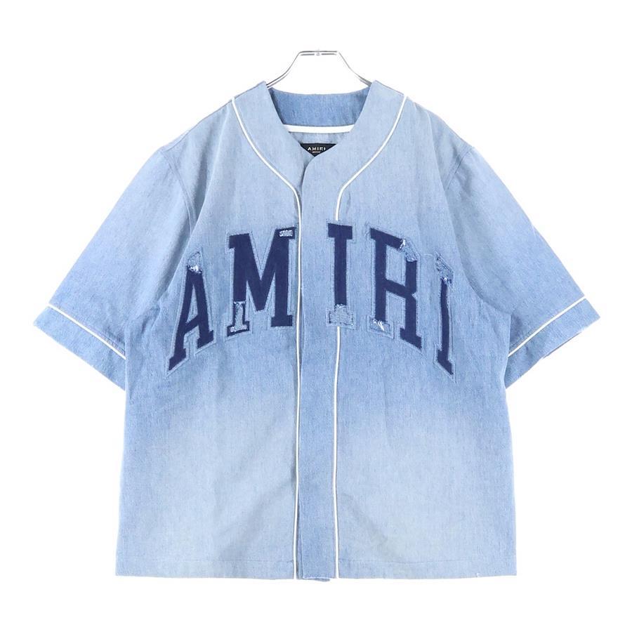 Amiri Sunfaded Baseball Shirt, Sunfaded Denim Short Sleeve Shirt, Indigo, Size M