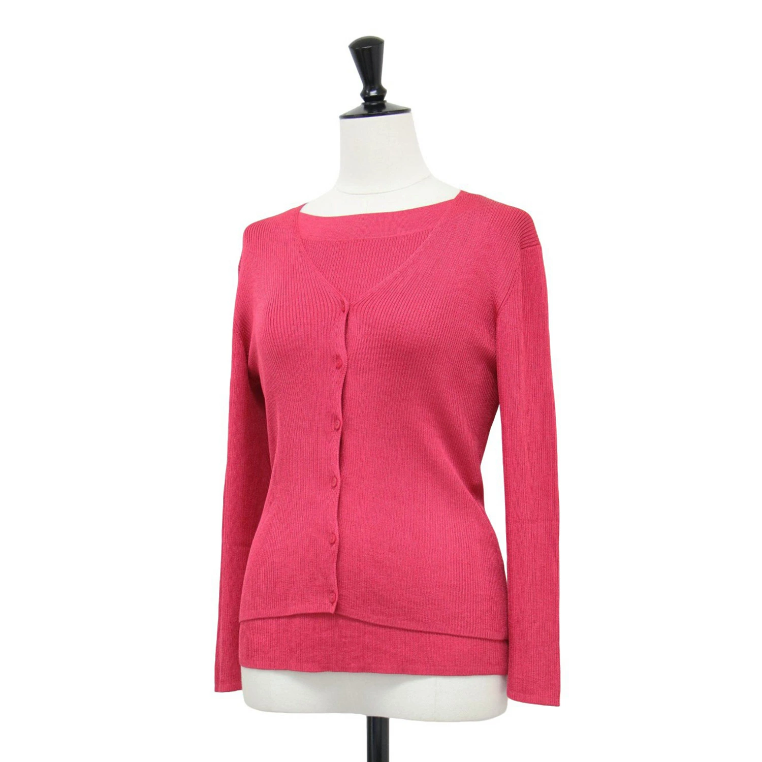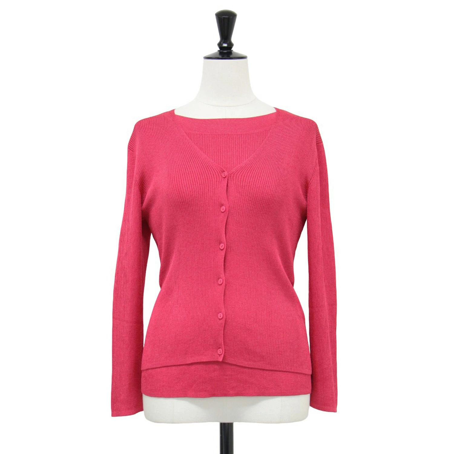 | サイズ | 38(M)カーディガン:着丈約53cm(背中襟下から)×身幅約36.5cm(脇下から)×カーディガン:肩幅約34.5cm×カーディガン:袖丈約48cm(肩上から) インナー:着丈約47cm(背中襟下から)×身幅約40cm(脇下から)×インナー:肩幅約34cm×インナー:袖丈約27.5cm(肩上から) |