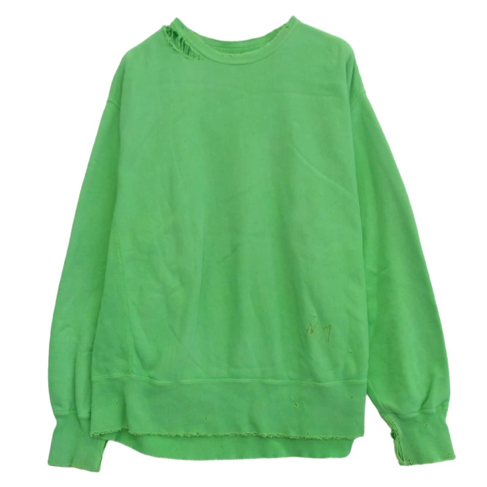 ANCELLM Anselm 23SS ANC-CT14 DYED DAMAGE SWEAT Crew Neck Sweatshirt, Light Green, Size 2, Men's [Pre-owned]
