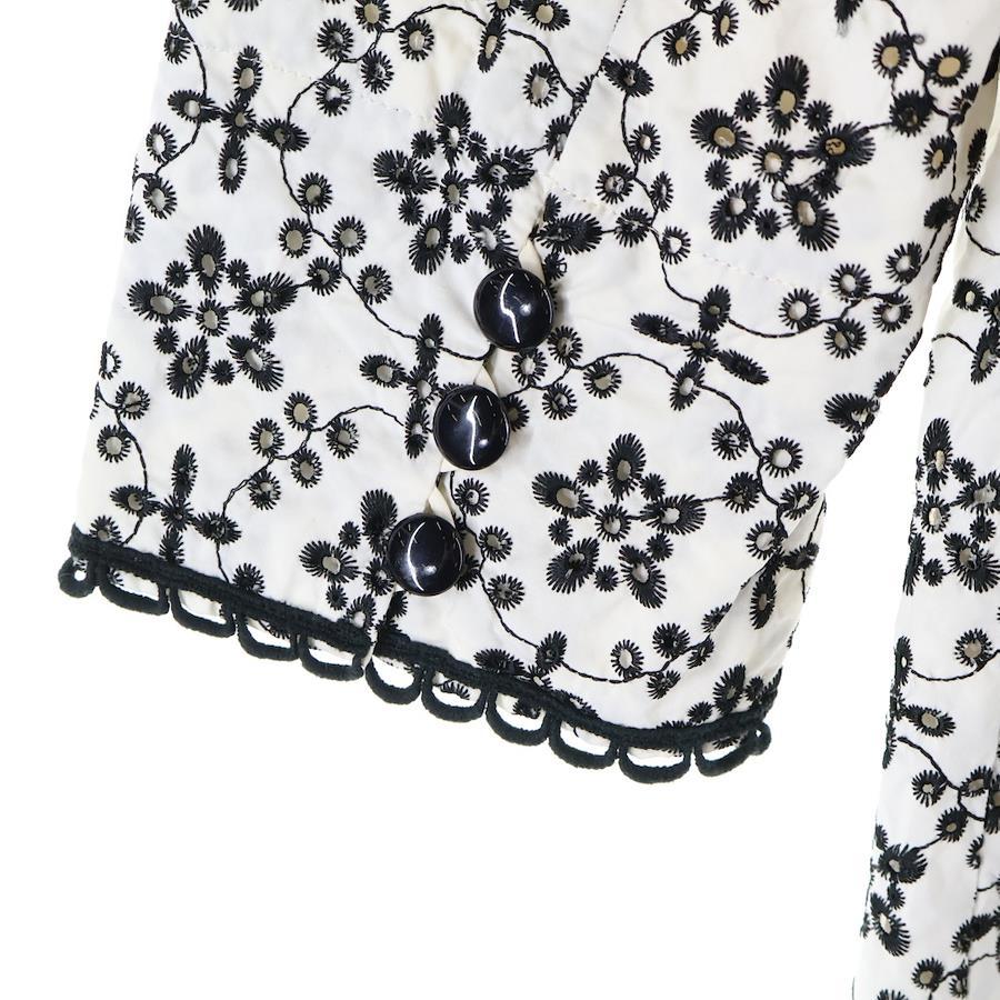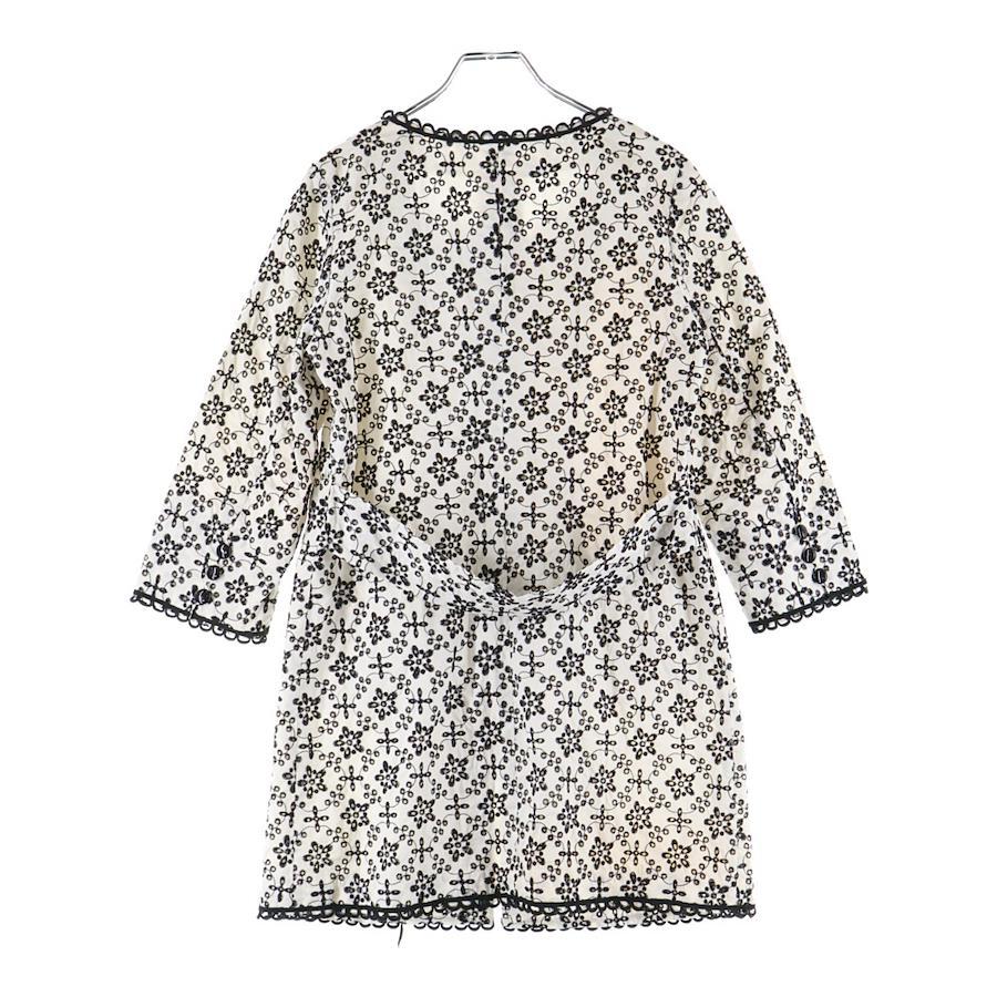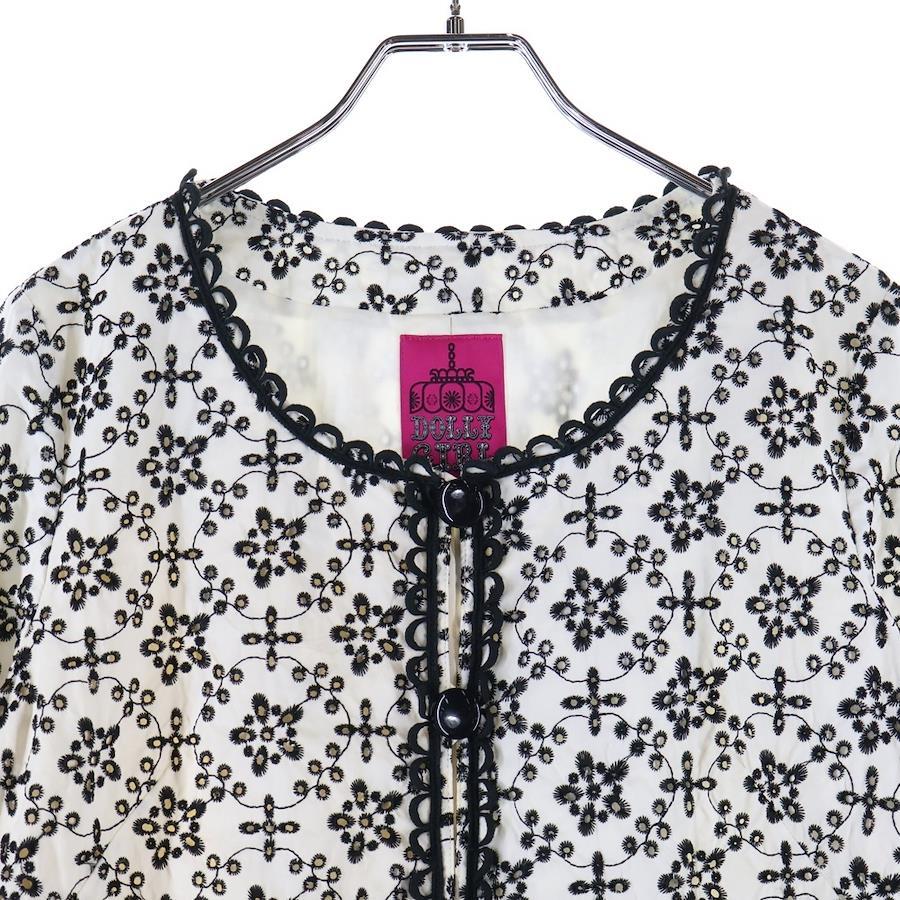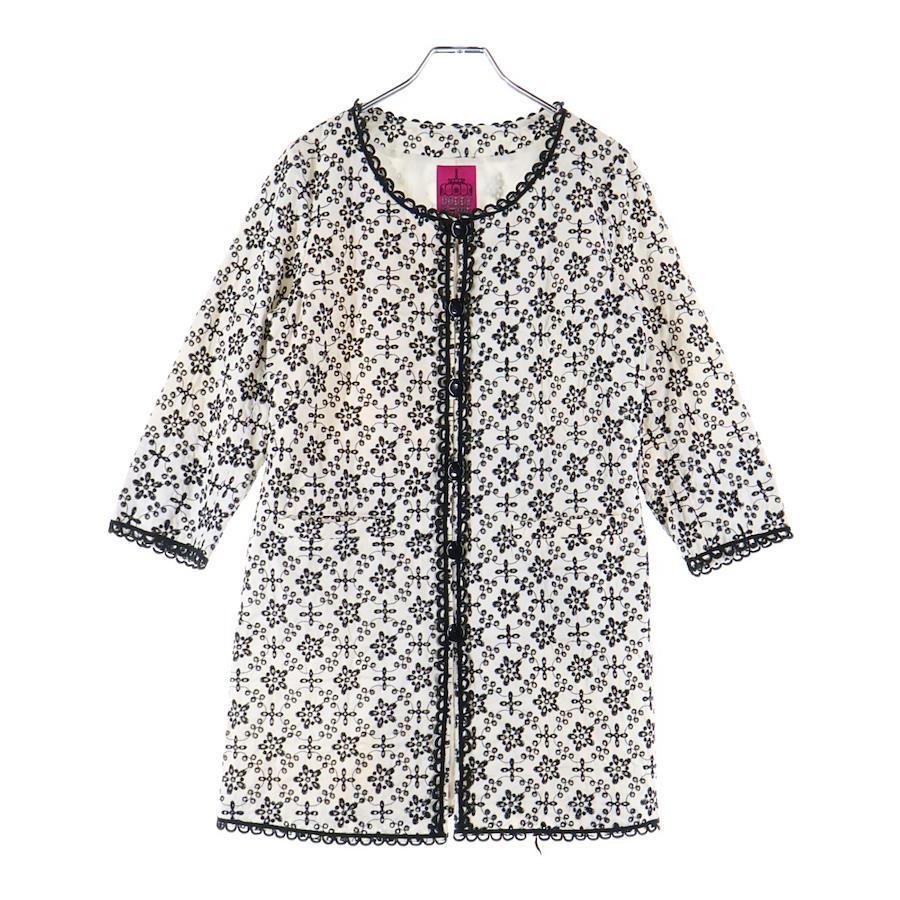 [モデル]DOLLY GIRL BY ANNA SUI ドーリーガール バイ アナスイ カットアウト刺繍 総柄 五分袖 ノーカラー ロングジャケット ホワイト/ブラック レディース