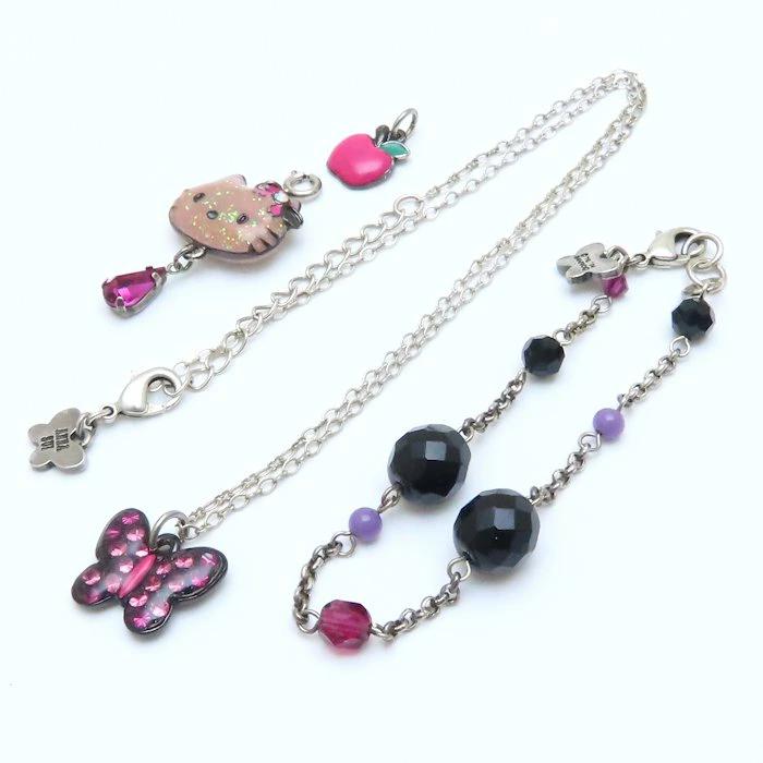 | 商品説明 | | 取扱店舗 | ミドリヤ本店 | | 状態 | 中古ABランク | | 素材 | シルバーメッキ | | サイズ | [バタフライモチーフ] 縦14.3x横17.4ミリ [キティモチーフ] 縦15.9x横18.9ミリ [ネックレス]38~42.5センチ [ブレスレット]17.5~18.5センチ | | 重量 | 11.7g | | 付属品 | 外箱(汚れあり) | | 備考 | [全体] 傷 / メッキ剥がれ