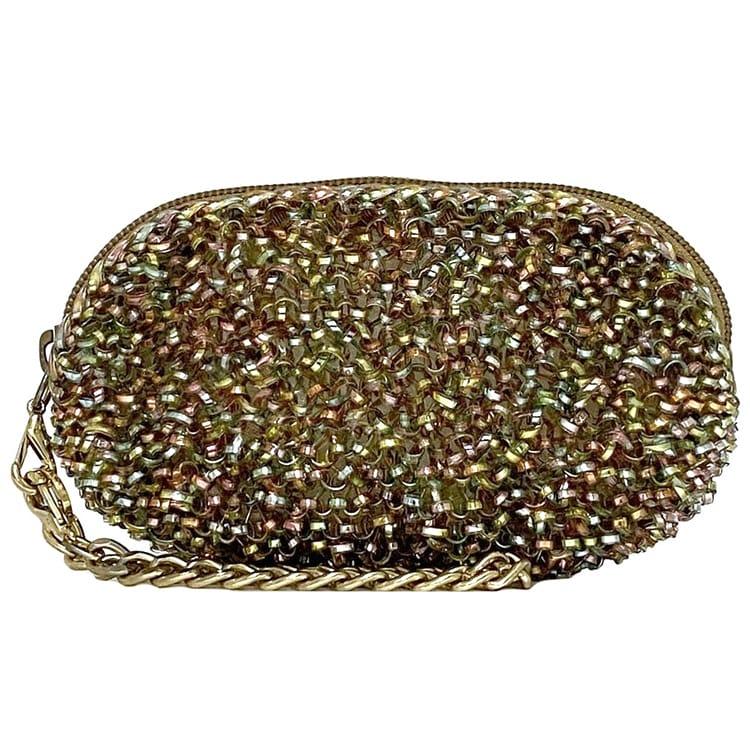 アンテプリマ ポーチ ec-22583 ゴールド マルチカラー 美品 小物入れ PVC 中古 ANTEPRIMA 編み込み ミニポーチ ファスナー チェーン 定番 人気 女性 レディース 小物 小さい ケース コスメポーチ 化粧ポーチ コンパクト お洒落 高級感 ブランド 本物 鑑定済み