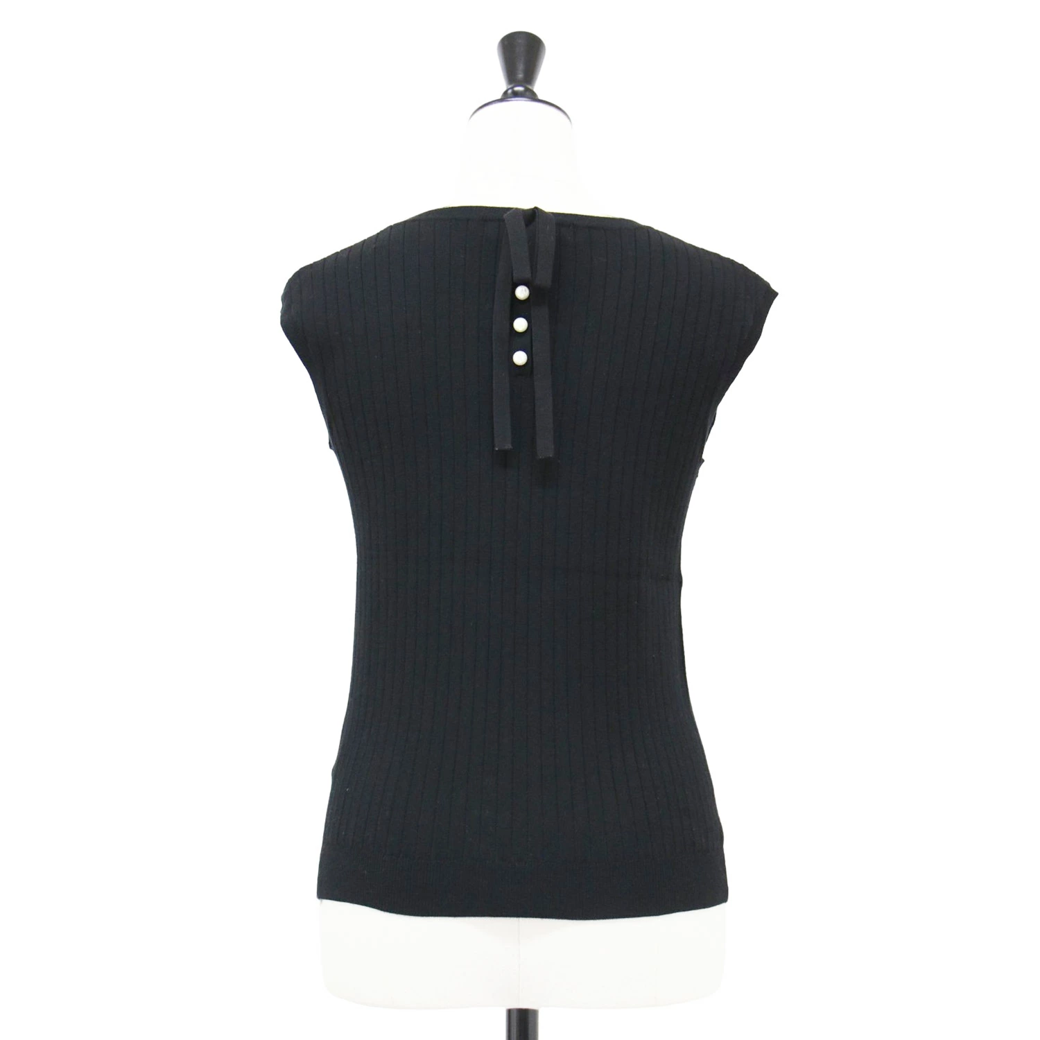 | 商品説明 | ・バックリボン、パールボタン付き ・襟、裾、アームホールリブ付き ・プルオーバー |