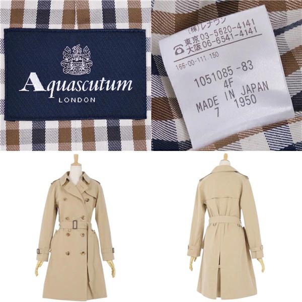■商品名アクアスキュータム Aquascutum LONDON コート トレンチコート 裏チェック ベルト付き アウター レディース ベージュ サイズ4F(S相当)■状態説明・長い歴史を誇るモダン・ブリティッシュブランド”Aquascutum LONDON”。クラシックで美しいシルエットが魅力的なトレンチコートです♪・表地は程よくハリのあるコットンギャバジン。裏地はアイコニックなチェックデザイン。肩パット無しで美しいショルダーラインをお楽しみいただけます◎・国内正規取扱品です。・袖と裾に汚れが御座いますが、ご使用に差し支えるようなものはなく全体的に良好な状態です!【季節感:秋冬春】【付属品:ベルト】■素材表地:コットン100% 胴裏:コットン 袖裏:ポリエステル■カラーベージュ■表記サイズ4F(S相当)■実寸サイズ着丈:約94.5cm身幅:約47cmゆき丈:約77cm袖丈(脇下から):約44cm肩幅(エポレット~エポレット):約39cm■状態ランクB 傷や汚れがあるが、まだまだ使用可能な状態■店舗管理番号cf10do-rm24f12041womens_beige womens_s