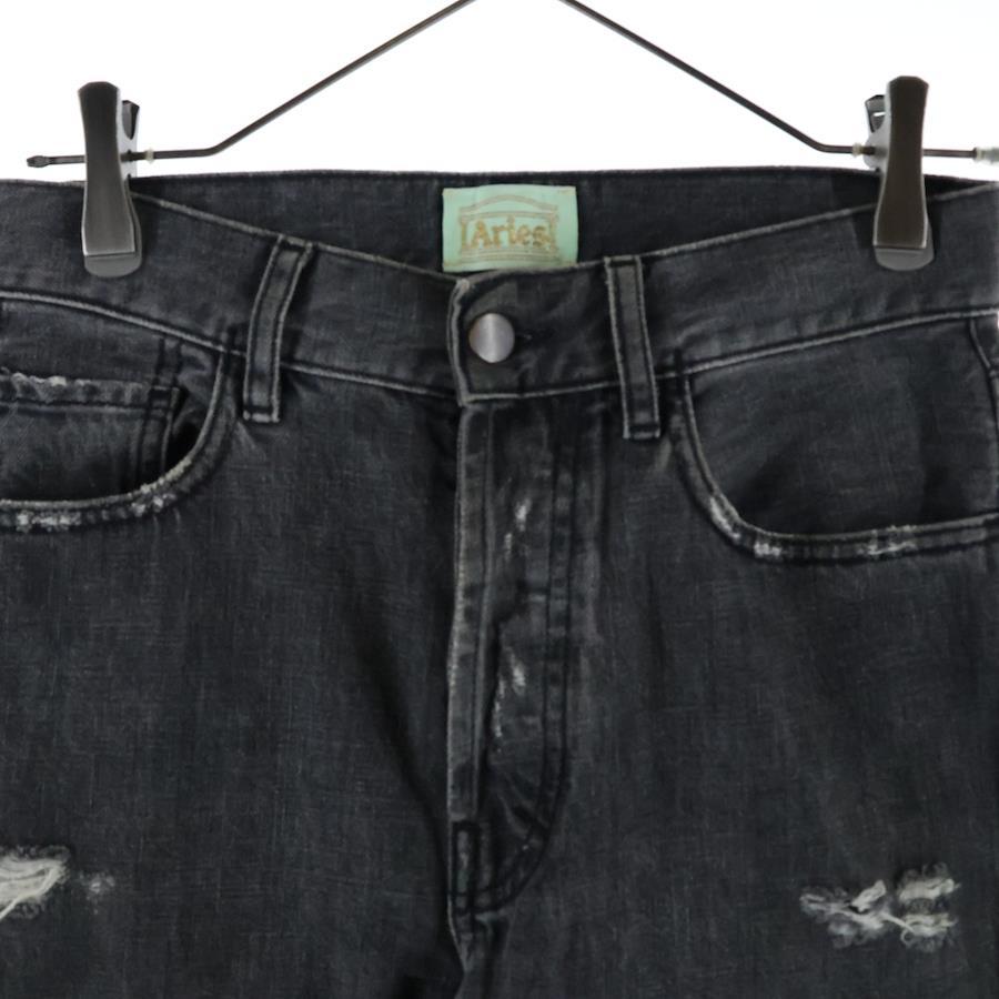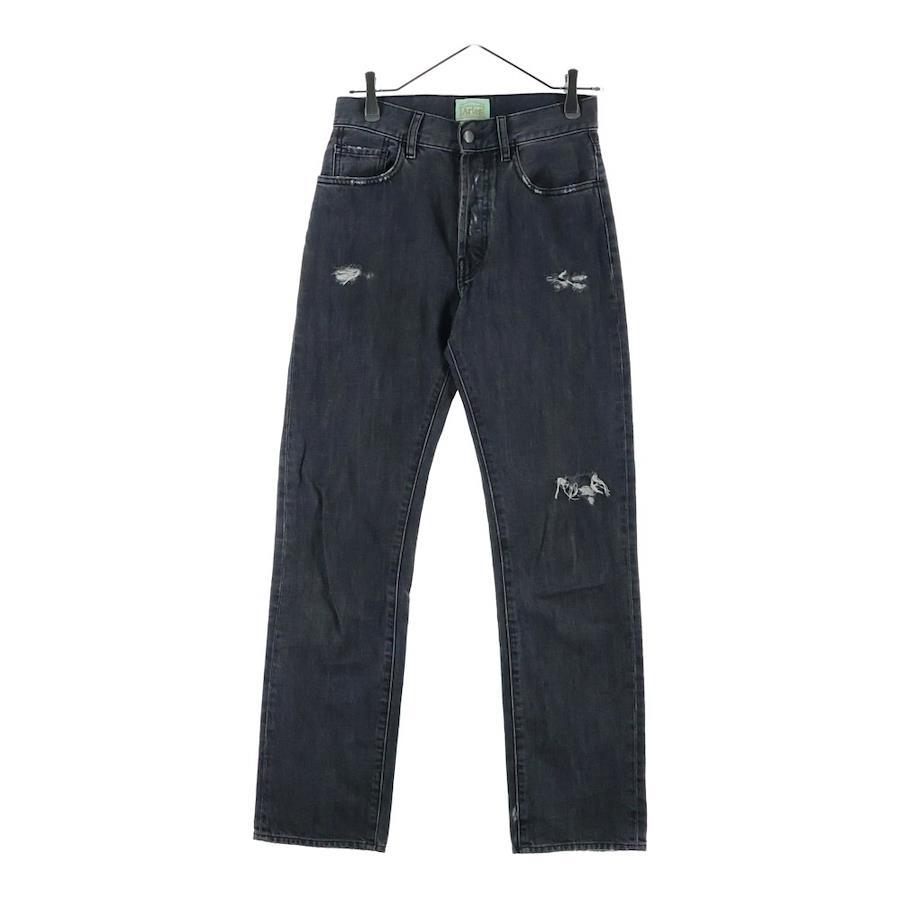 [モデル]LILLI JEANS セルヴィッジデニムジーンズ レディース ダメージ加工ボタンフライデニムパンツ ブラック