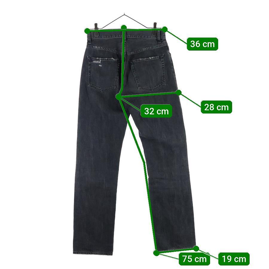 [サイズ]ウエスト:36センチ ワタリ:28センチ 股上:32センチ 股下:75センチ 裾幅:19センチ