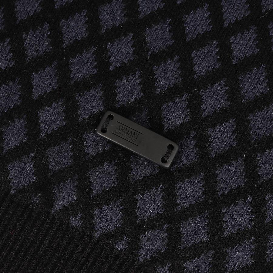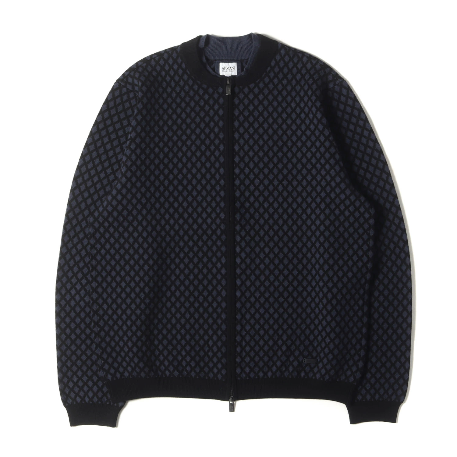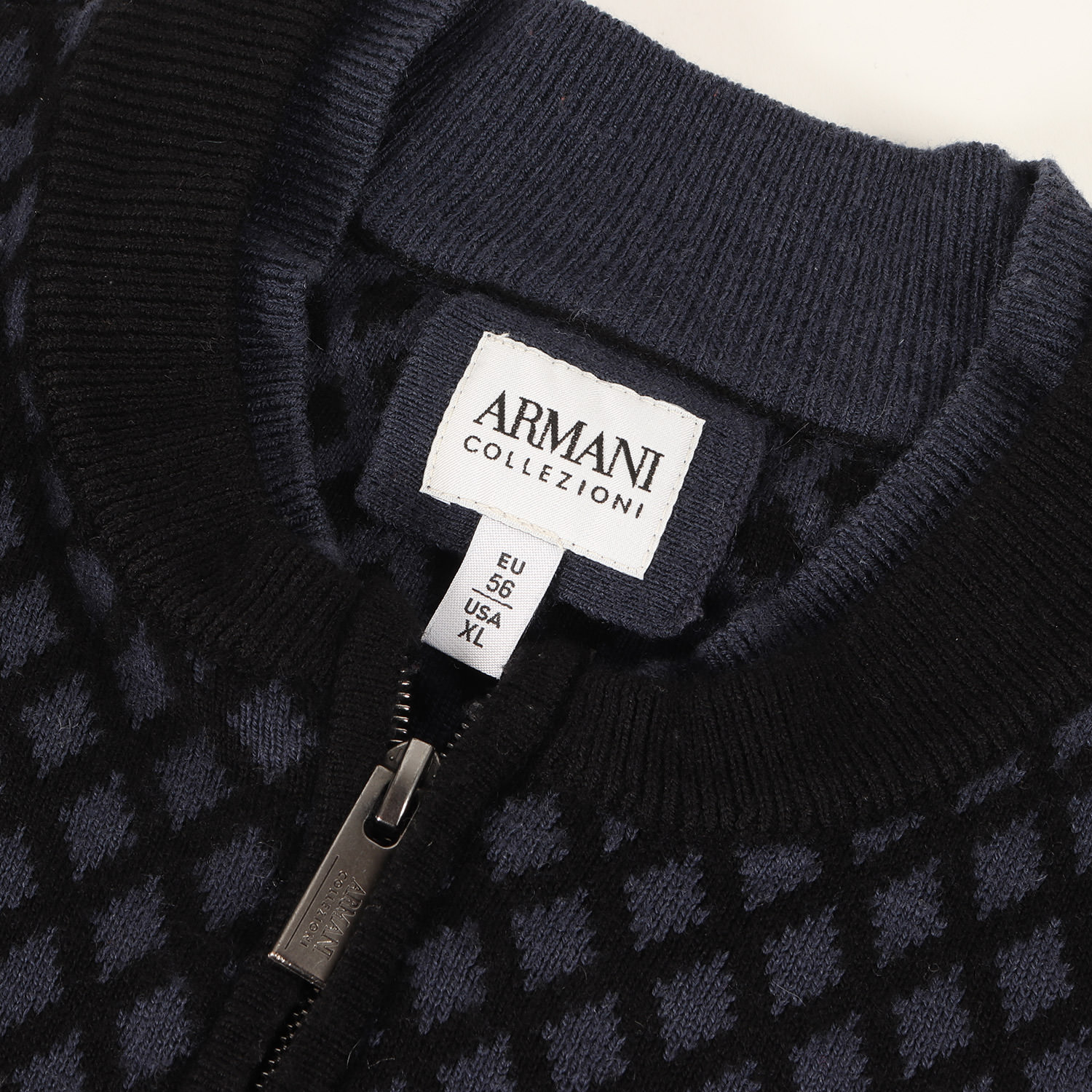 ARMANI COLLEZIONI Sweater in Navy and Black, Size XL | Diamond-Print Wool/Cashmere Full-Zip Knit Sweater | Men's Top | Pre-owned | Excellent Condition | K4619