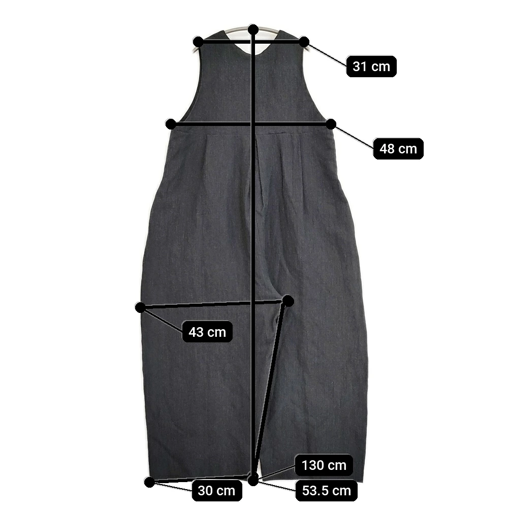 | 実寸サイズ | 着丈:約130cm 身幅:約48cm 股下:約53.5cm ワタリ幅:約43cm 裾幅:約30cm ※採寸画像がある商品はハンガーに吊るした状態での計測のため、平置きでの採寸とは差が生じる場合がございます。平置きでの実寸サイズをご希望の場合は、ご購入前に必ずご質問ください。 ※記載以外のサイズが合わないことを理由とした返品はできませんので、 記載部分以外で実寸サイズの気になる箇所があれば必ず購入前にご質問ください。 |
