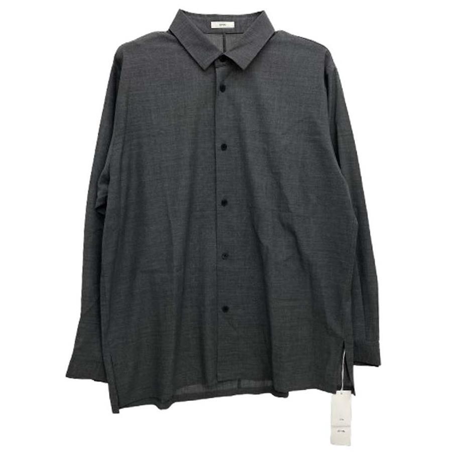 グレー系【モデル】TWIST WOOL TROPICAL 強燃ウール ツイストウール オーバーサイズ 長袖 シャツ