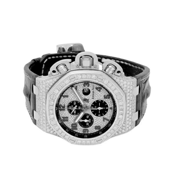 お問い合わせ商品IDW235405ブランドオーデマ・ピゲ商品名オーデマ・ピゲ AUDEMARS PIGUET ロイヤルオーク オフショア クロノグラフ 26215BC.ZZ.A101CR.01 ブラック文字盤 中古 腕時計 メンズ型番26215BC.ZZ.A101CR.01文字盤色ブラック文字盤種パヴェダイヤ素材K18ホワイトゴールドダイヤモンド革サイズケースサイズ: 48.0mmムーブメント自動巻き機能クロノグラフデイト表示スモールセコンド防水20m防水当店保証ご購入日より1年付属品国際保証書(ギャランティー) 有り純正ボックス 有り商品状態[中古]中古品につき全体的に多少の小傷がございます。※こちらは中古の商品となりますので、新品時と同様の防水性能が保持されていない場合もございます。※商品によっては、写真では確認できない傷がある場合もございます。※詳細はお問い合わせください。ご注文・ご来店前にご確認くださいませご来店購入をご希望の場合は、ご来店前に在庫の確認をお願いいたします。当サイトの商品は、実店舗でも販売しておりますので、あらかじめ在庫のご確認をお願いいたします。売り切れの際はご注文をキャンセルさせていただきます事ご容赦くださいませ。流通事情などにより付属品の一部がご提供できない場合がございます。商品によってはマイナーチェンジなどにより、掲載画像と現物に差異がみられることがございます。ご使用のパソコン環境により、掲載画像と現物の色合いに若干差異がみられることがございます。予告なく価格が改定される場合がございます。返品について通信販売にてご購入いただきました商品は、品質・梱包に万全を期しておりますが、万が一ご到着時に破損・不具合がございましたら2日以内にご連絡をお願いいたします。未使用の場合に限りご返金させていただきます。なお、上記以外の理由やお客様都合、ご使用済みの商品のご返品はお受けいたしかねます。