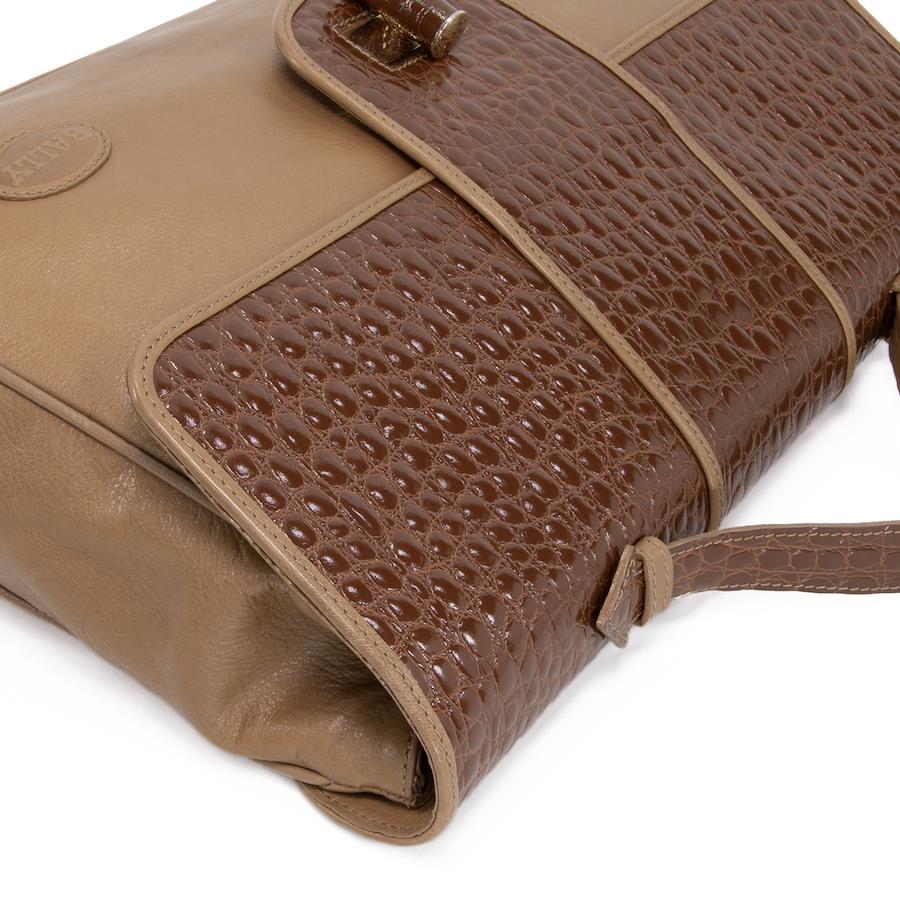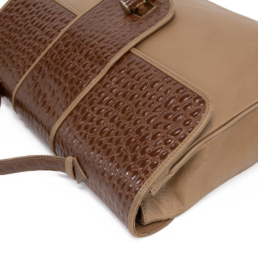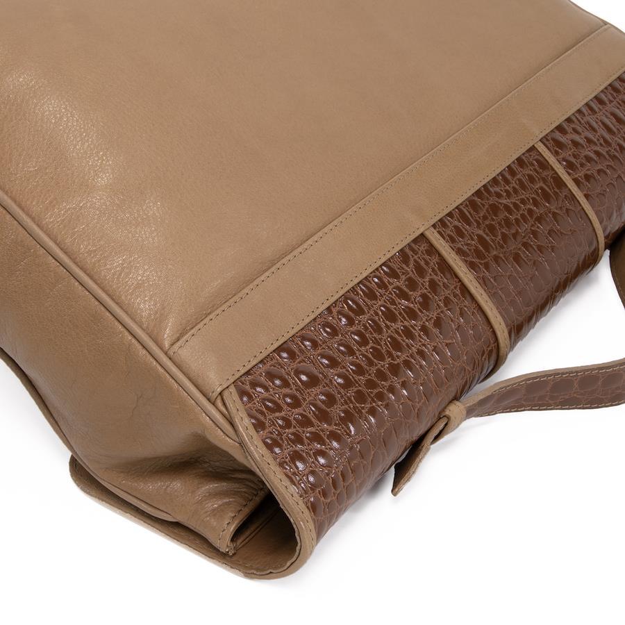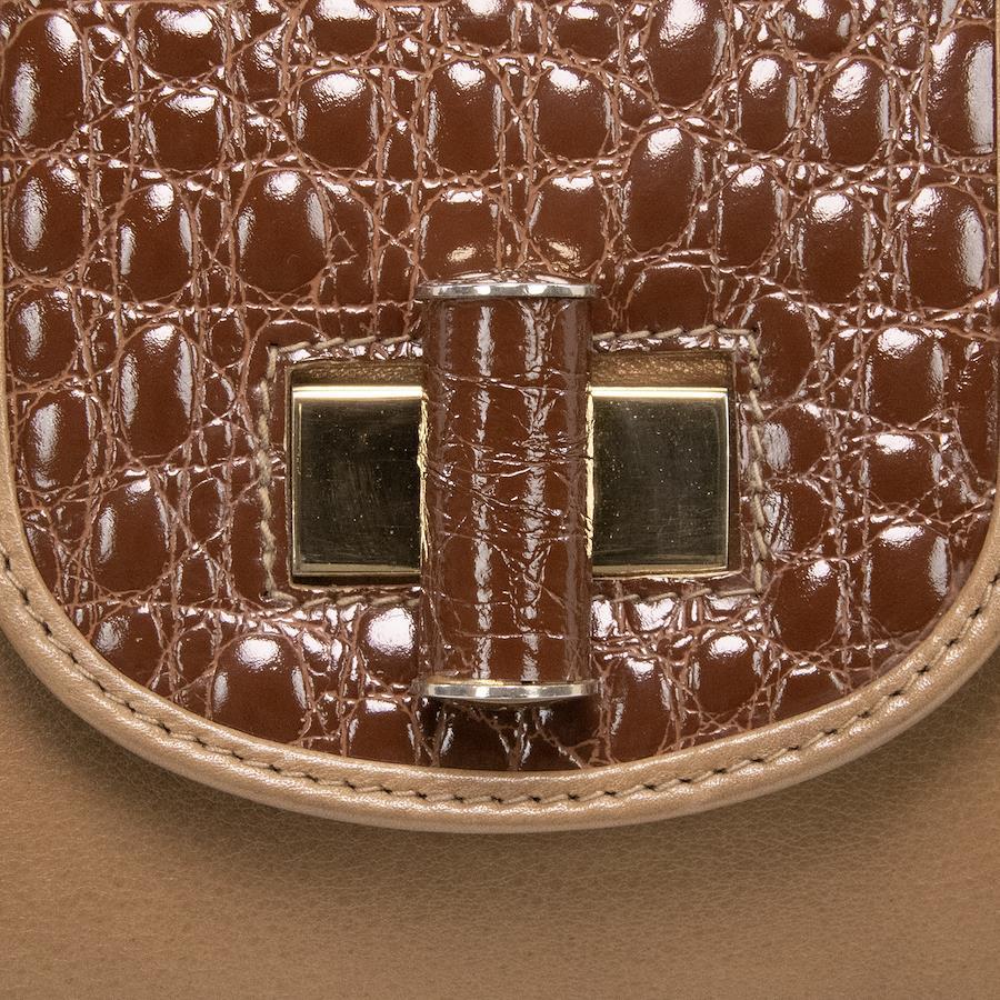 艶やかなクロコダイル型押しレザーと滑らかなカーフスキンのコントラストが、持つ方の装いに洗練されたアクセントを加える逸品でございます。