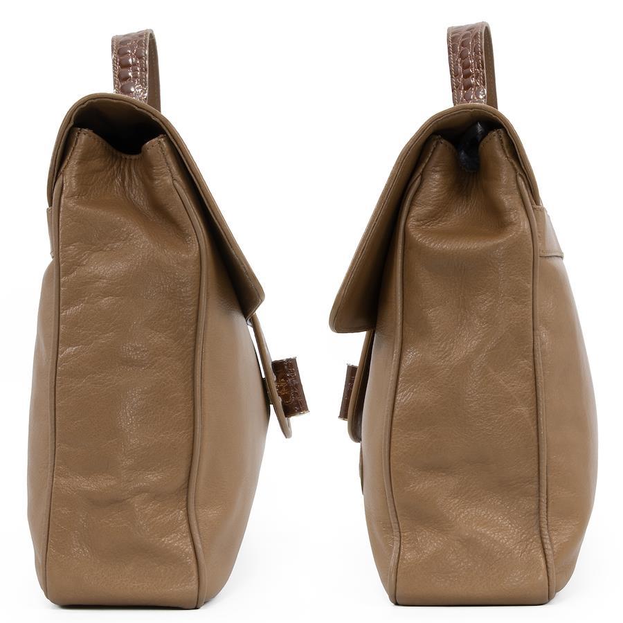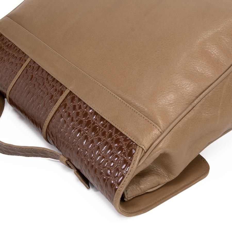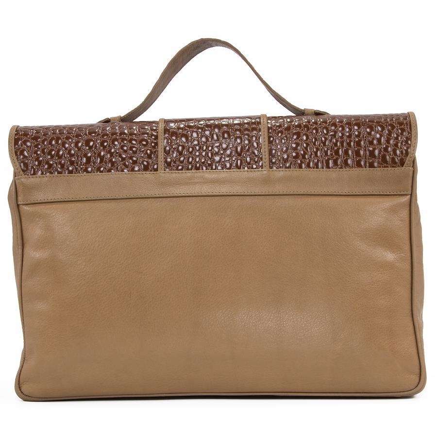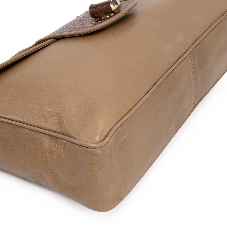 艶やかなクロコダイル型押しレザーと滑らかなカーフスキンのコントラストが、持つ方の装いに洗練されたアクセントを加える逸品でございます。