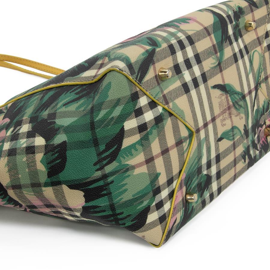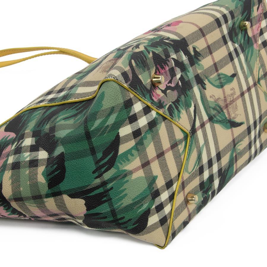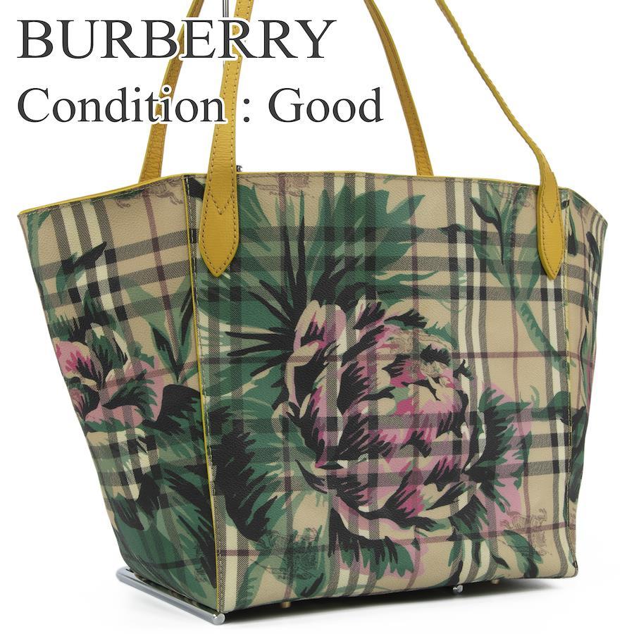 こちらは、伝統のホースロゴと共に大輪の牡丹が優雅な存在感を放っております、バーバリーのヘイマーケットチェック フローラルプリント カンタベリー・トートバッグでございます。