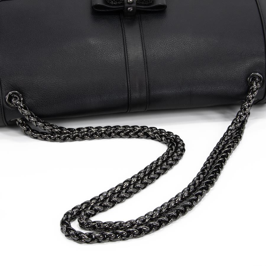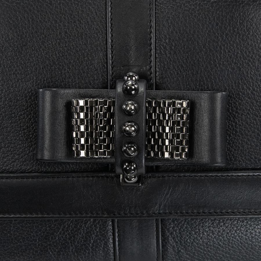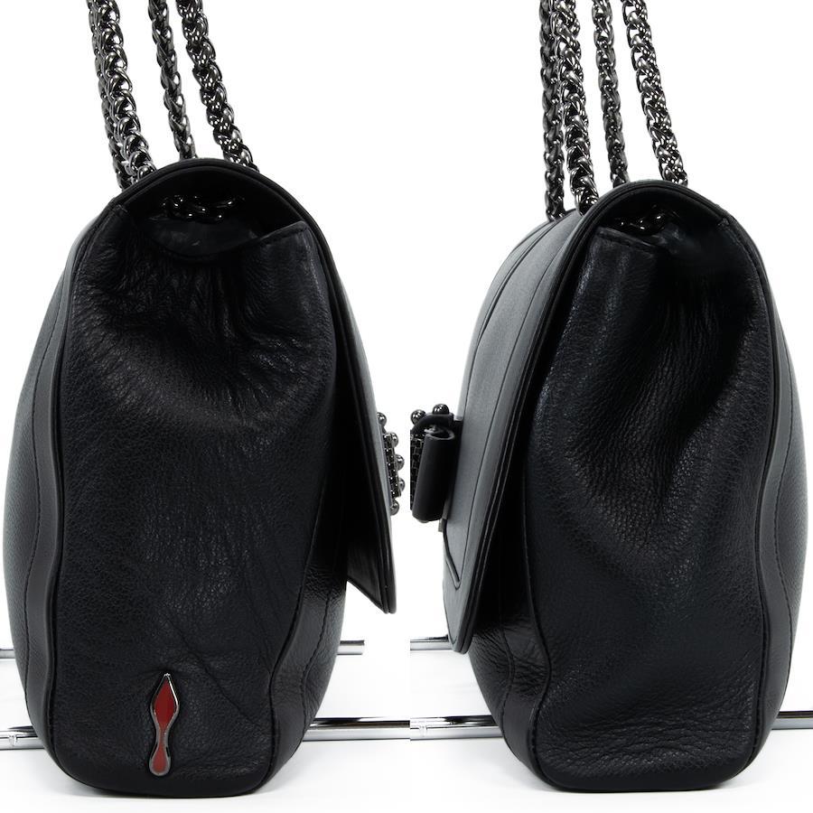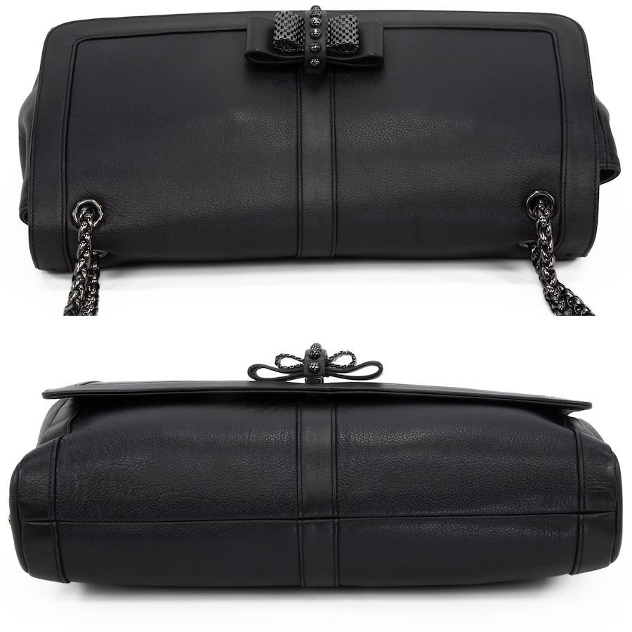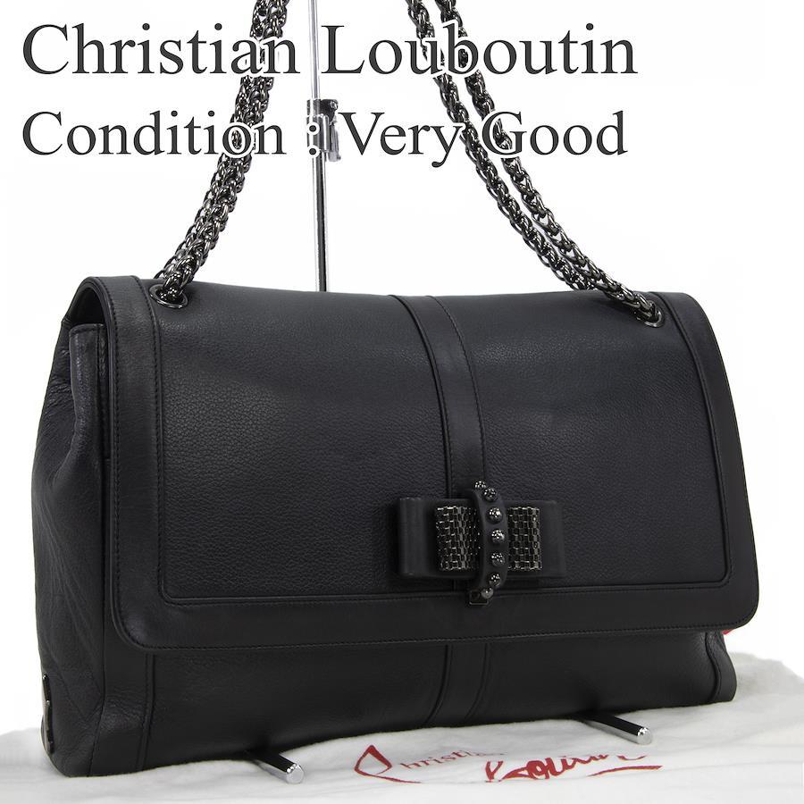 Authentic Christian Louboutin handbag, semi-shoulder bag, crossbody bag, women's, calfskin, Sweet Charity, black, rare model, Y2K, 90s, 00s, shoulder bag, crossbody bag, party bag, ribbon, chain, studs, red sole, genuine leather, beautiful gunmetal hardware, high-end brand, stylish bag, bag B318