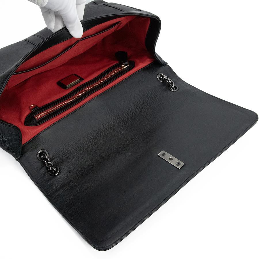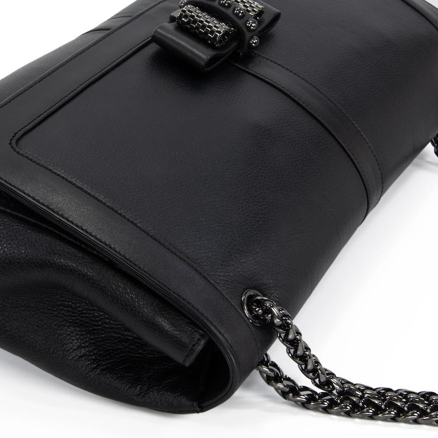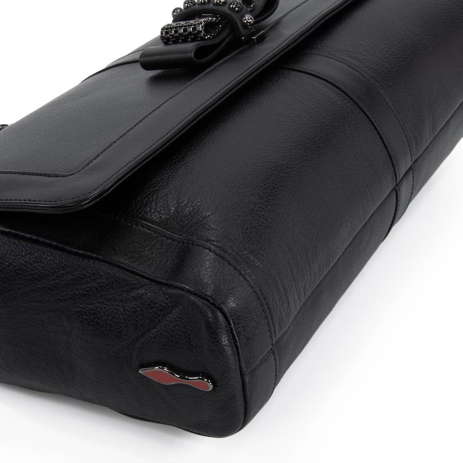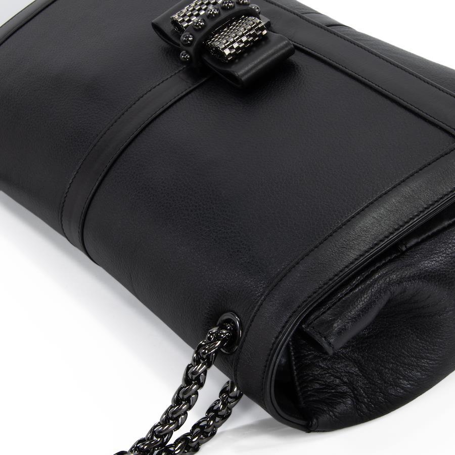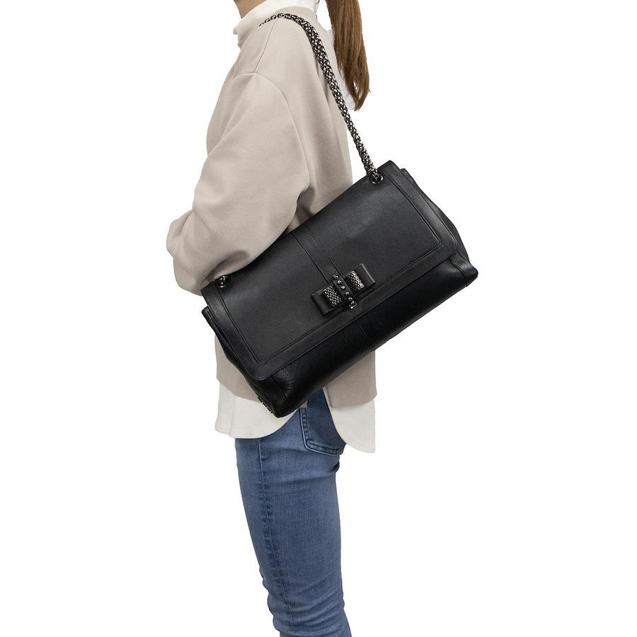 Authentic Christian Louboutin handbag, semi-shoulder bag, crossbody bag, women's, calfskin, Sweet Charity, black, rare model, Y2K, 90s, 00s, shoulder bag, crossbody bag, party bag, ribbon, chain, studs, red sole, genuine leather, beautiful gunmetal hardware, high-end brand, stylish bag, bag B318