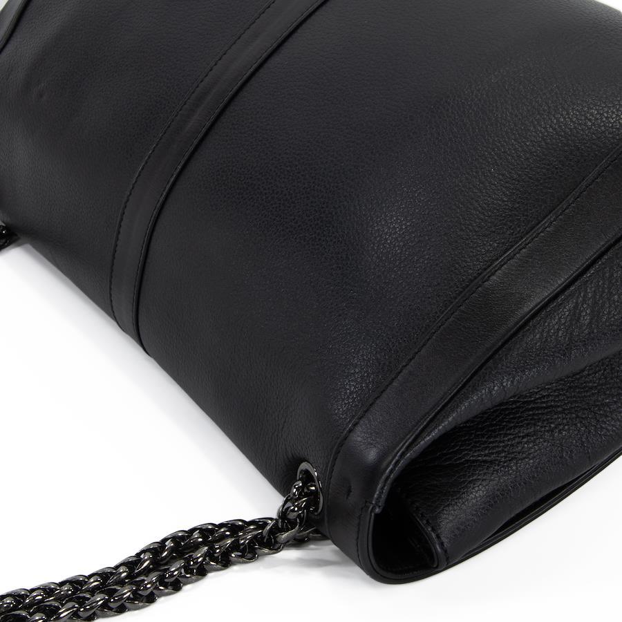 チェーンの長さを変えることで、ショルダーからクロスボディまで幅広い装いに寄り添う万能な作りでございます。
