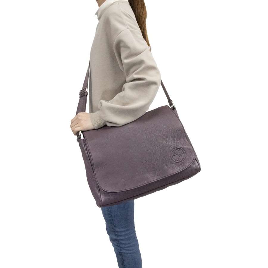 こちらは、洗練された紫色が装いに大人の品格と落ち着きをもたらしてくれる、グッチのソーホー・2WAYショルダーバッグでございます。