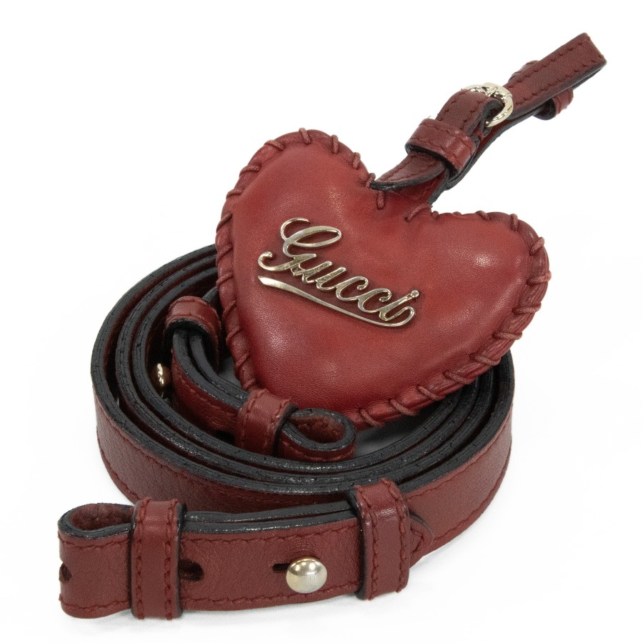 深みのある赤の風合いが美しく、大人の可愛らしさを演出するハートのチャームが目を惹きます。