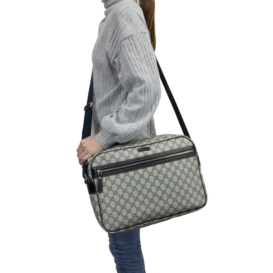 こちらは、多くの荷物をスマートに運びつつ都会的な佇まいを演出してくれる、グッチのGGスプリーム・ショルダーバッグでございます。
