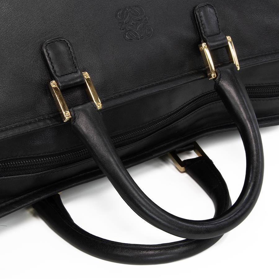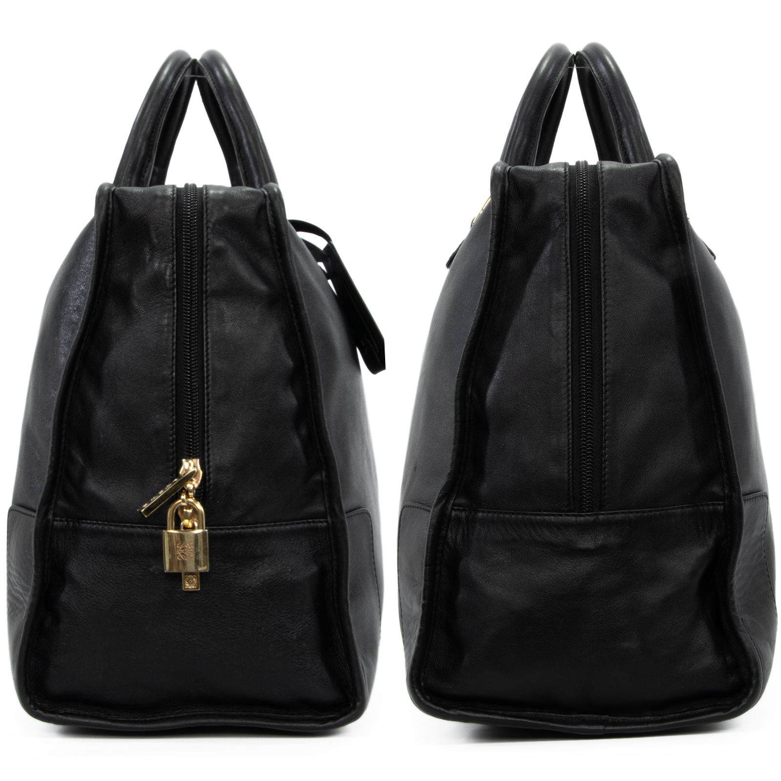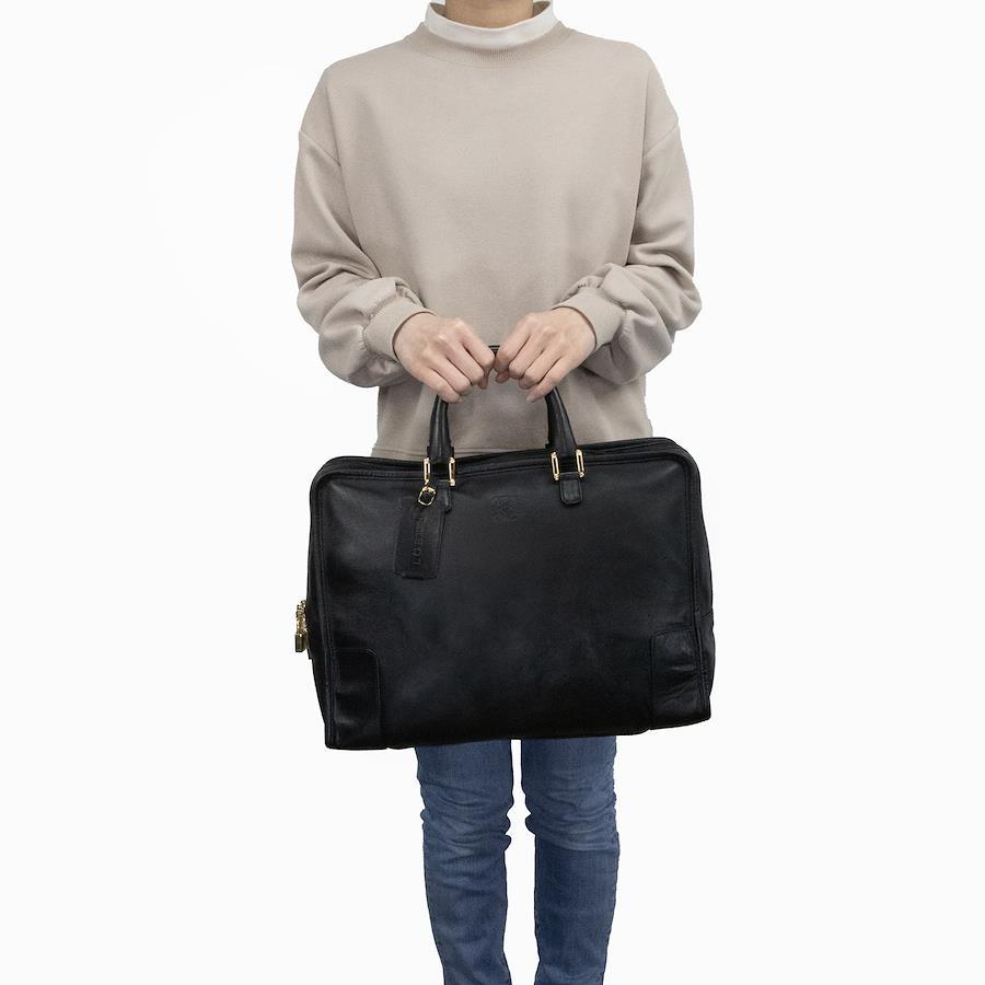 こちらは、漆黒のレザーが都会的な装いに華やかさを添えてくれる、ロエベのアマソナ40・ボストンバッグでございます。