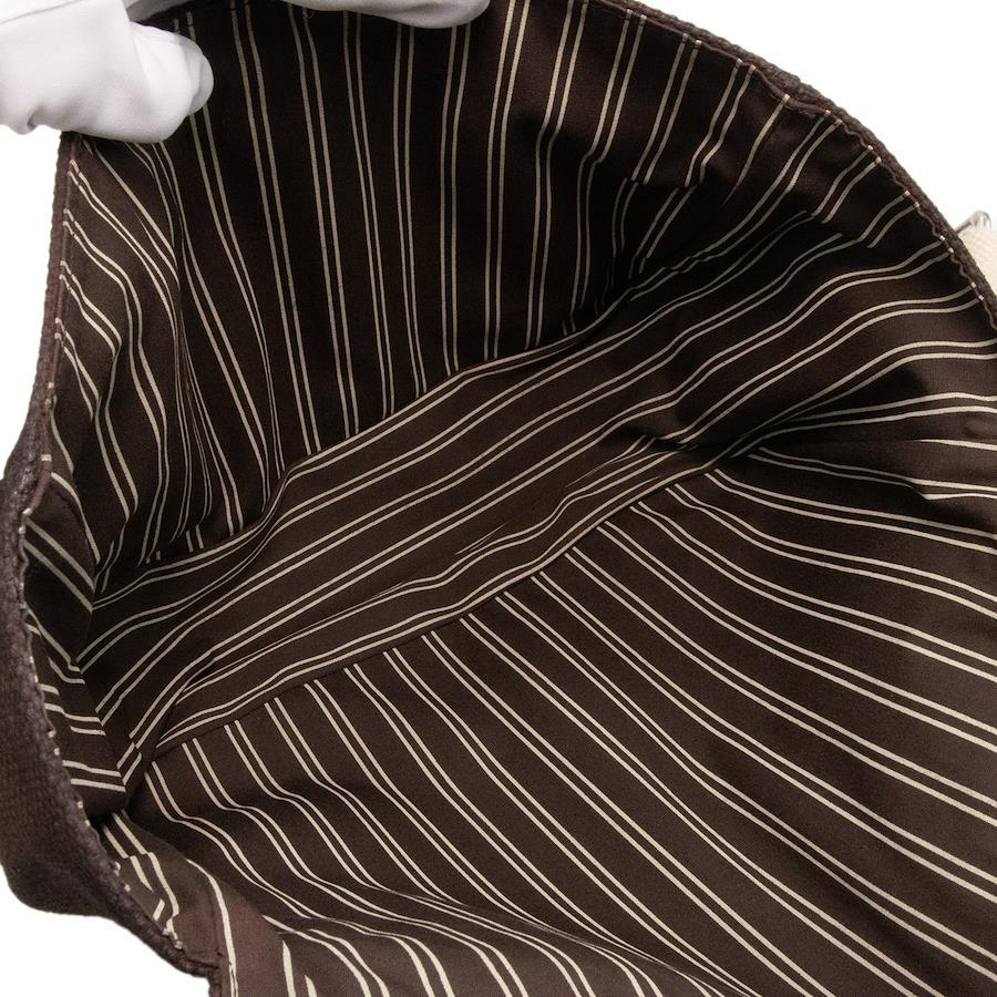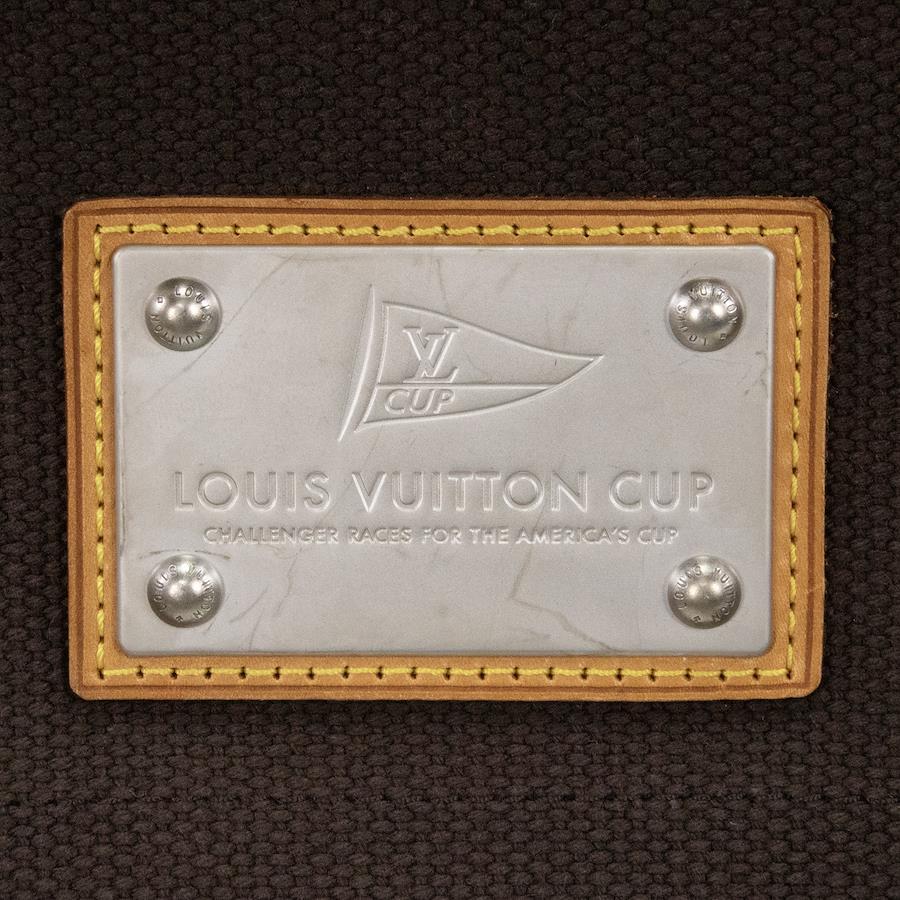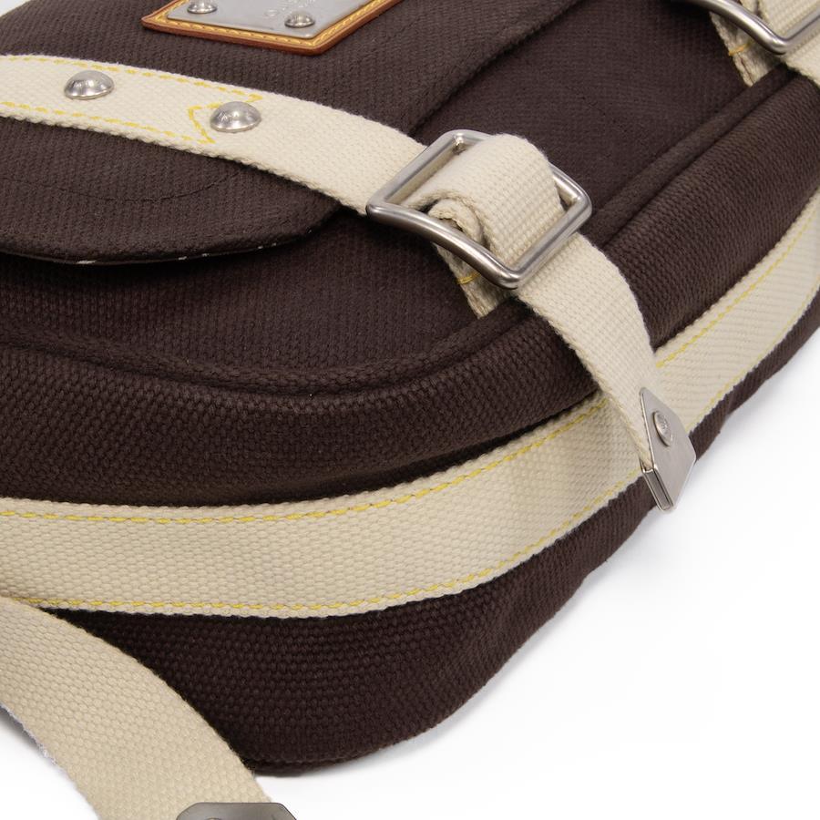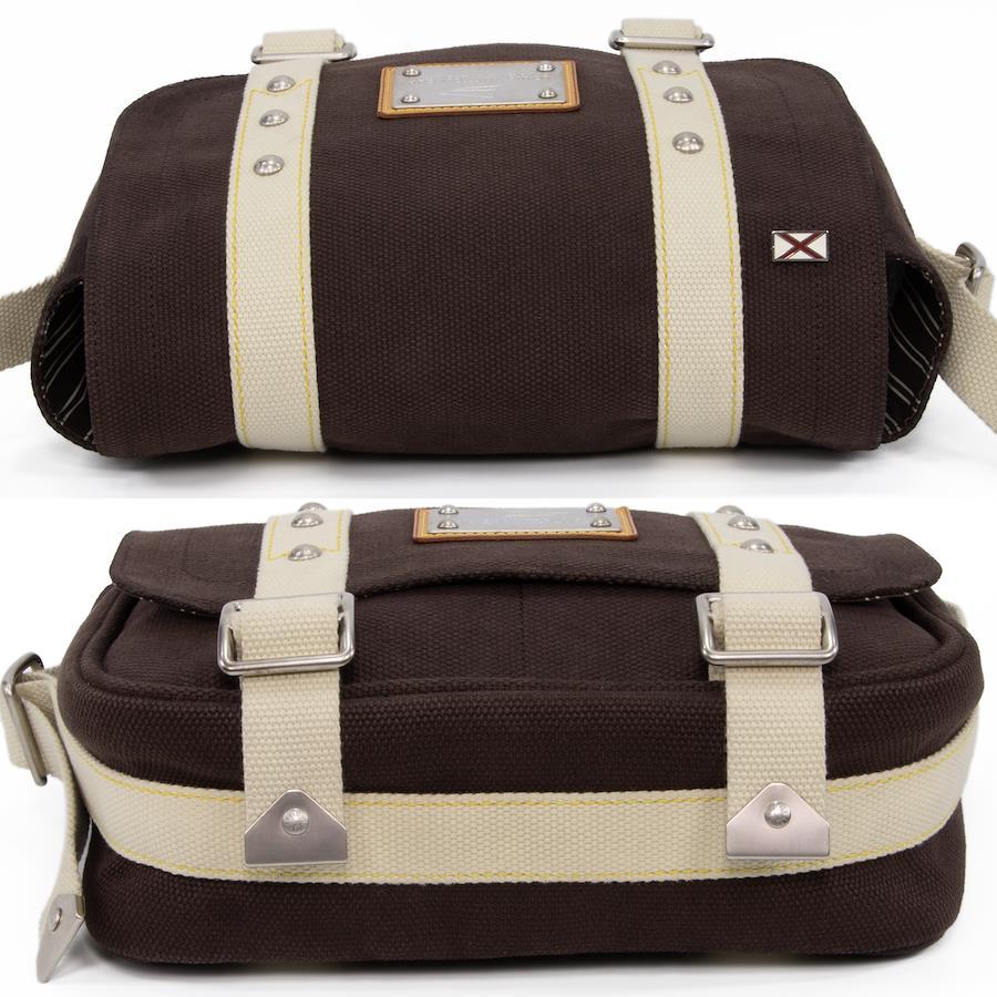 Authentic LOUIS VUITTON semi-shoulder bag, one-shoulder bag, or crossbody bag for men and women. Made of canvas and tanned leather, the Bezas PM Antigua Louis Vuitton Cup features a two-tone dark brown and ivory design. This rare and unusual model can be worn on the shoulder or across the body. Features a logo plate, badge, and studs, as well as genuine leather and silver hardware. A beautiful, high-end, stylish bag. Product number I274.