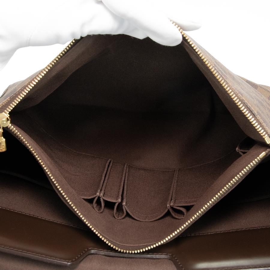 ダミエ・エベヌの落ち着いた風合いが装いを引き締め、大人の知性と品格を演出いたします。