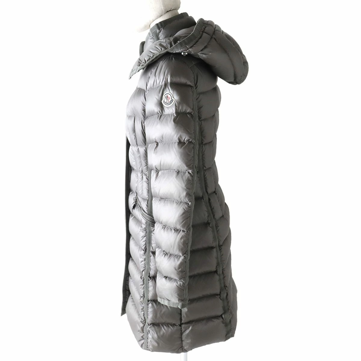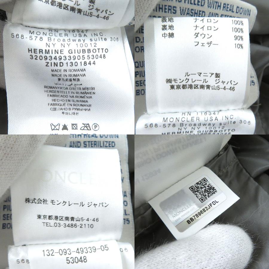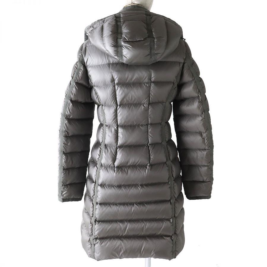 Authentic MONCLER HERMINE Women's Long Down Coat with Logo Patch and Hood, Gray, Size 0, Winter Condition◎ [Pre-owned]