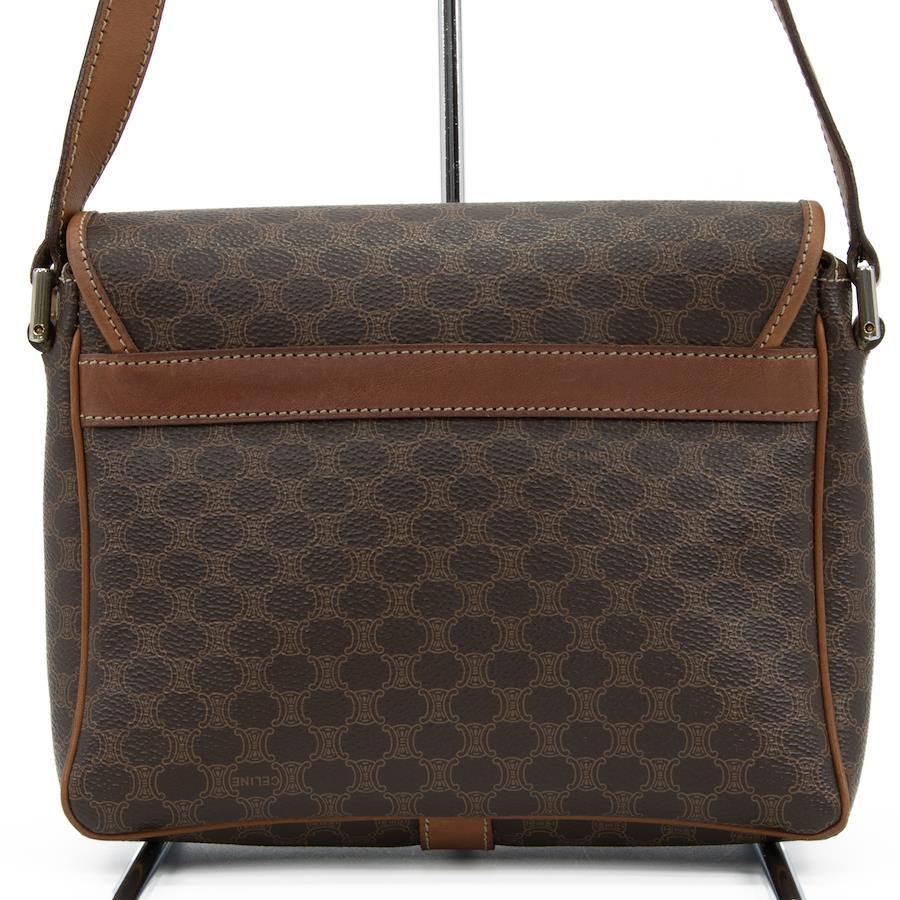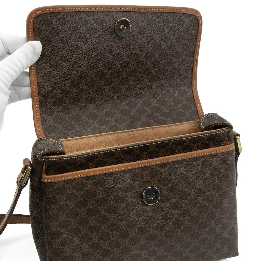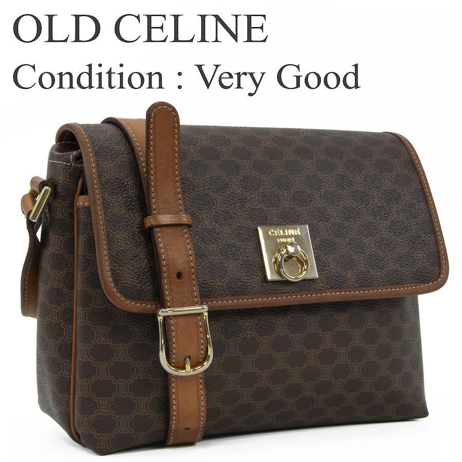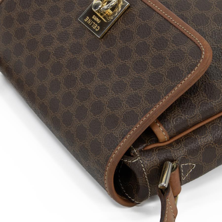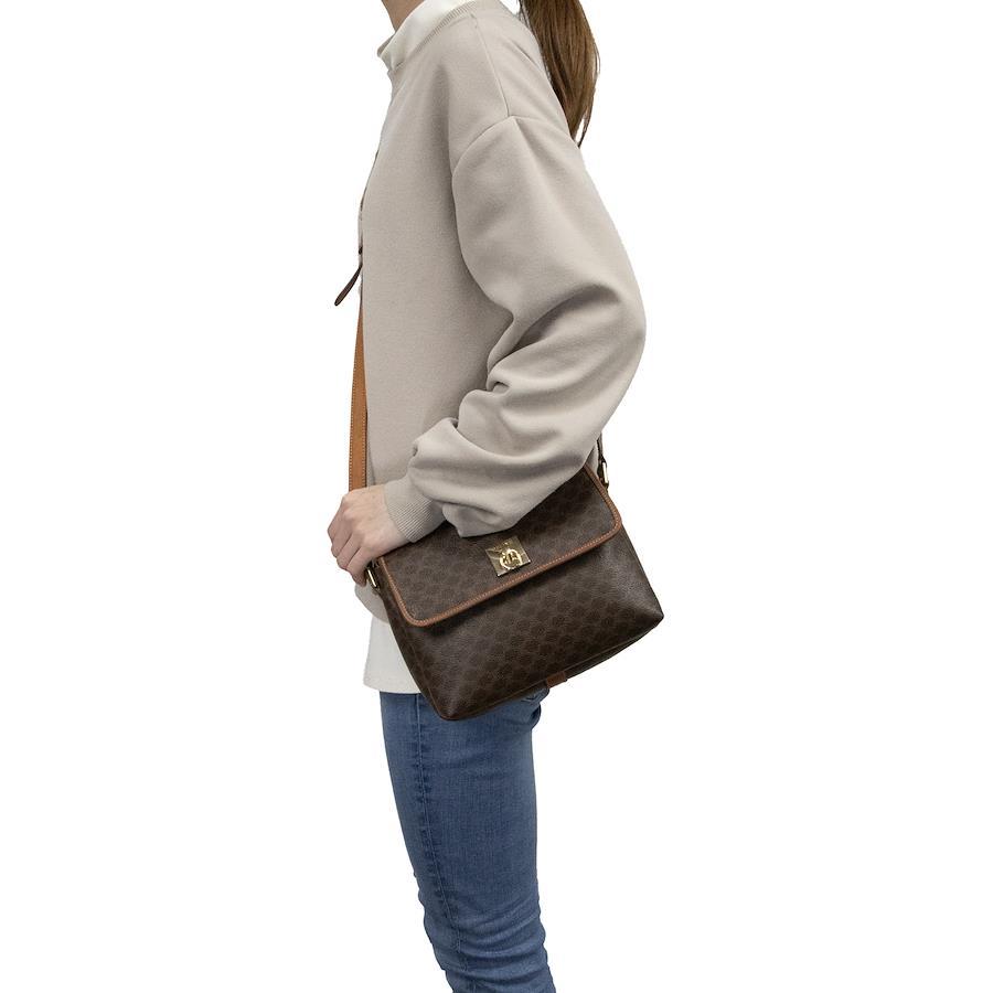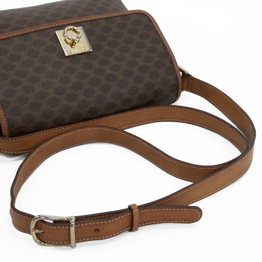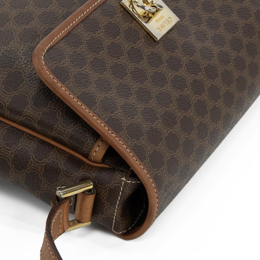 Authentic OLD CELINE shoulder bag/crossbody bag for men and women. Made of coated canvas and natural leather in a rare brown color. Features a unique, small size, all-over pattern, logo, and gold hardware. A beautiful, high-end brand bag. A886